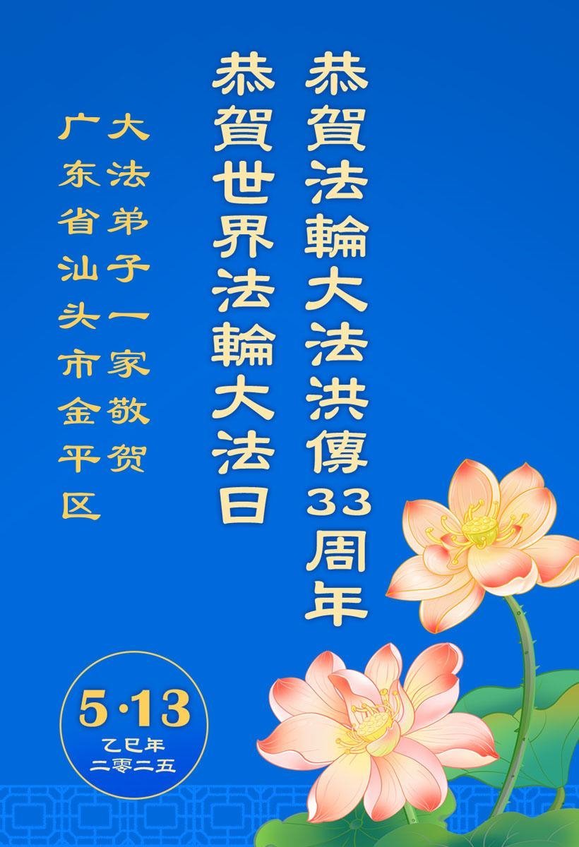 廣東汕頭金平大法弟子恭賀世界法輪大法日暨師尊華誕!