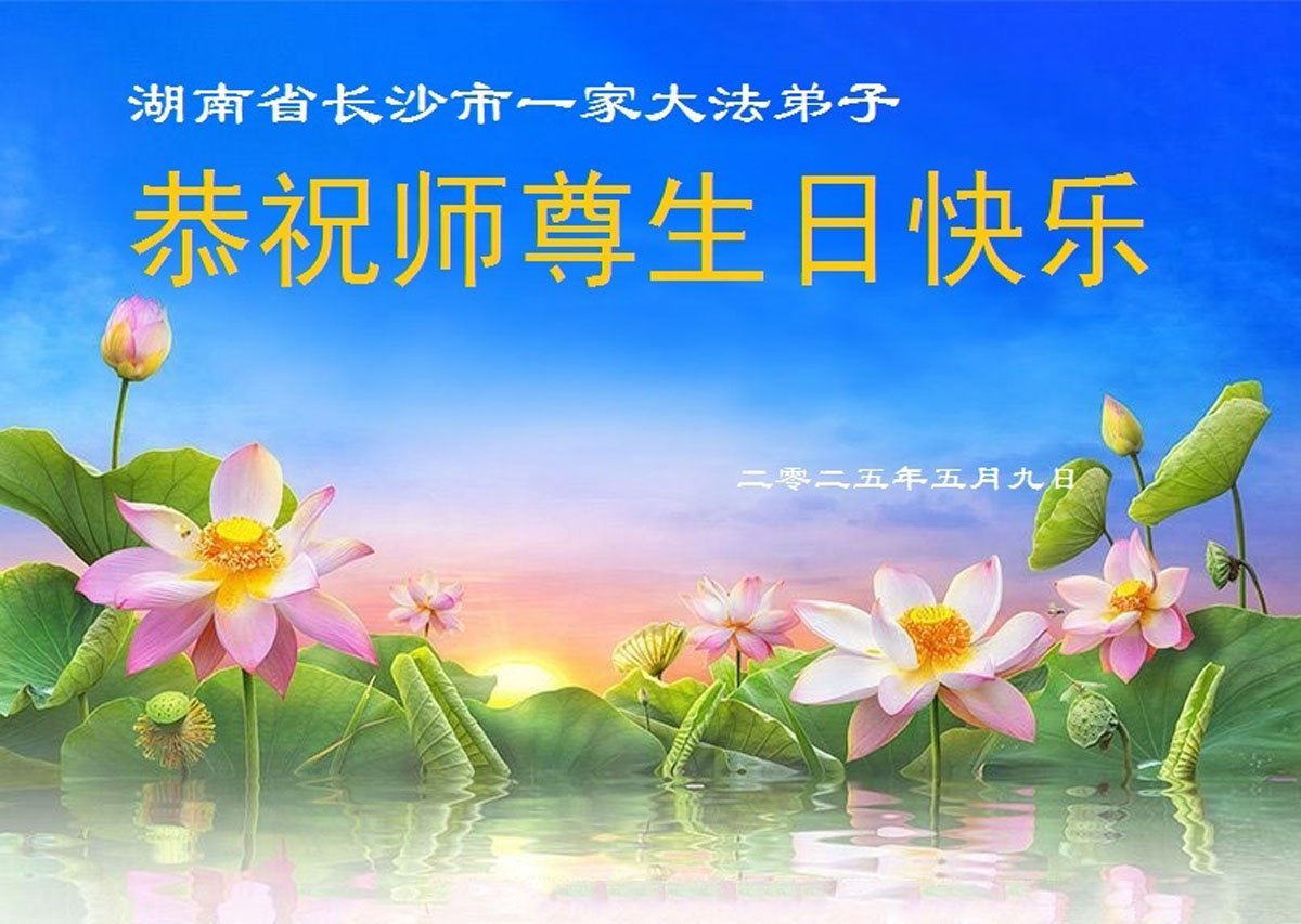 湖南省長沙一家大法弟子恭祝師尊生日快樂!