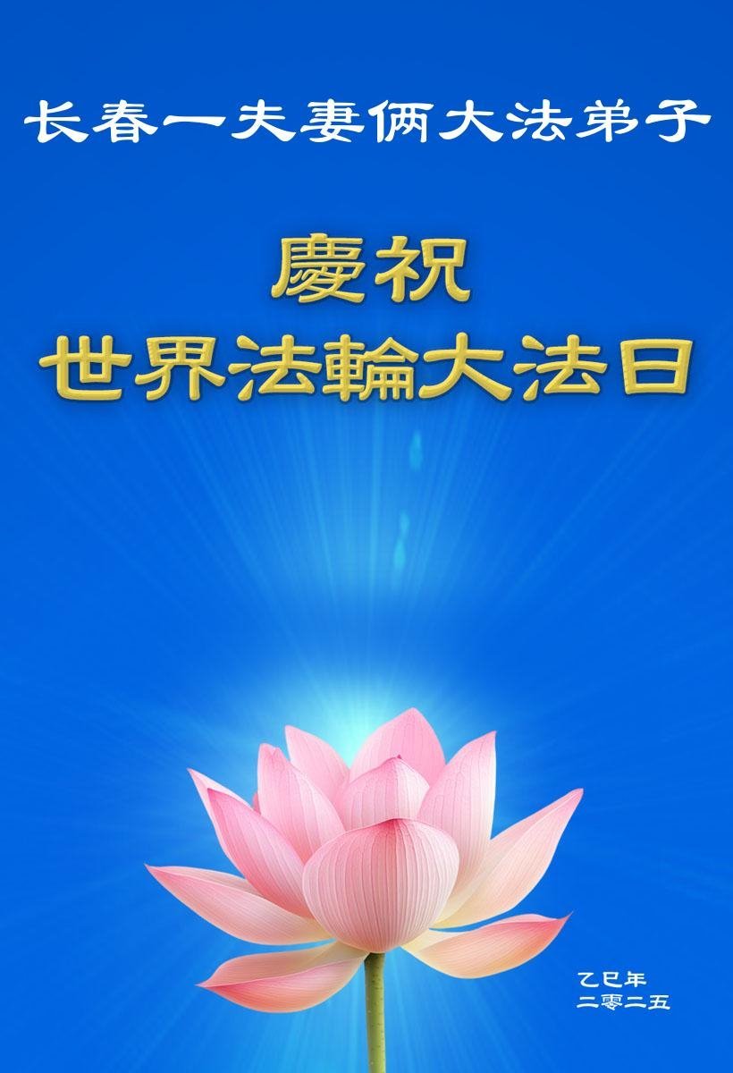吉林省長春一夫妻倆大法弟子恭祝師尊華誕!同慶世界法輪大法日!