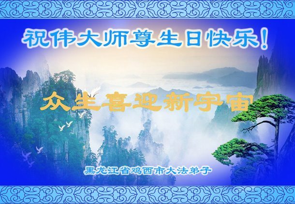 黑龍江雞西市大法弟子恭祝偉大師尊生日快樂!