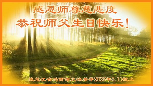 黑龍江省齊齊哈爾市昂昂溪區一大法弟子恭祝慈悲偉大的師尊生日快樂!恭賀世界法輪大法日!叩謝師尊!