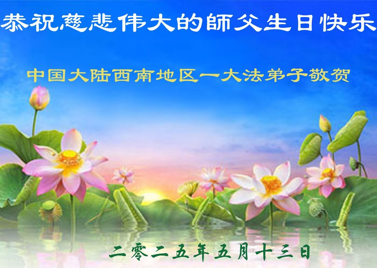 中國大陸西南地區一大法弟子恭祝慈悲偉大的師父生日快樂!