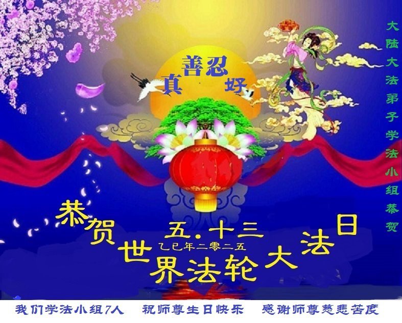 大陸九位大法弟子恭賀世界法輪大法日!恭祝師尊華誕!