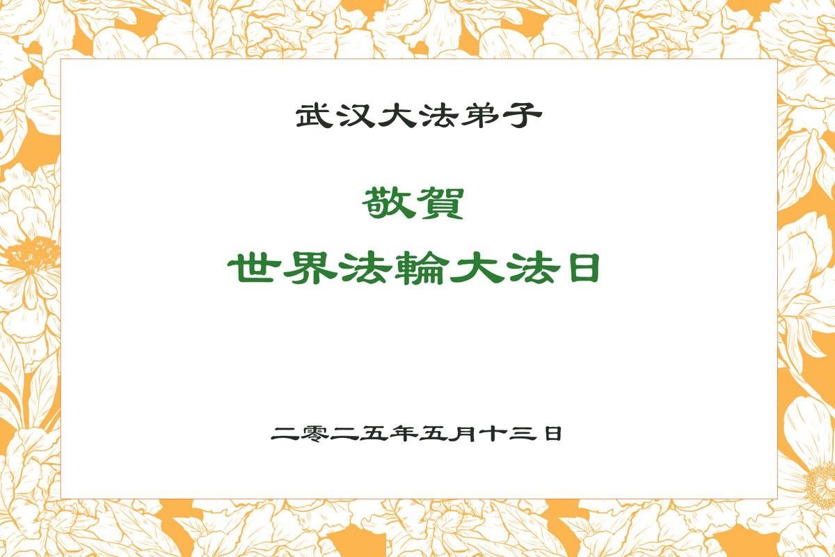 湖北省武漢大法弟子恭賀世界法輪大法日!恭祝師父生日快樂!