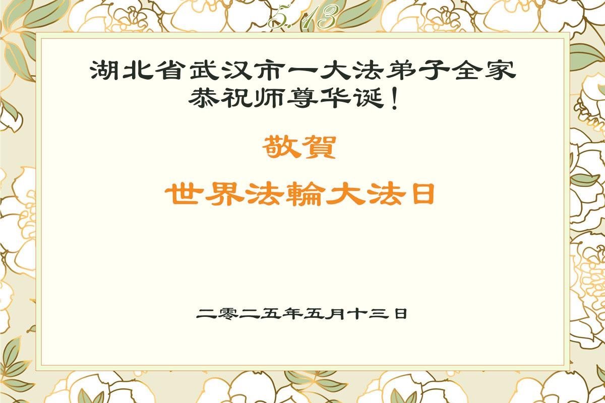 湖北省武漢市一大法弟子全家敬賀世界法輪大法日!恭祝師尊華誕!