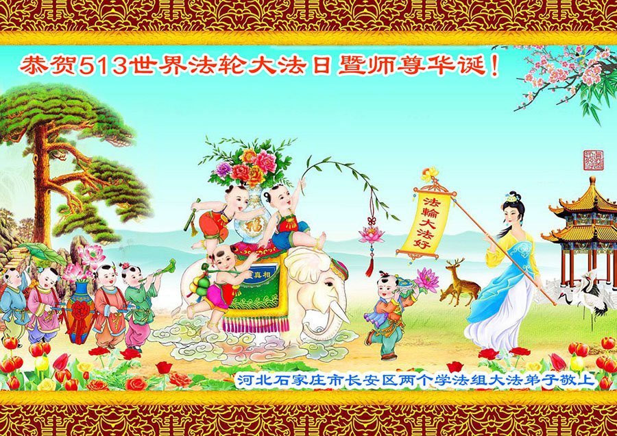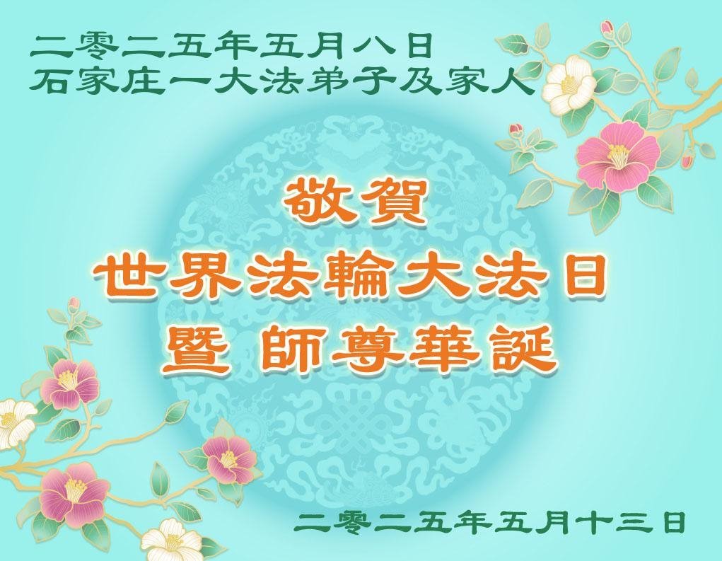 河北省石家莊市大法弟子恭賀世界法輪大法日!恭祝師尊生日快樂!普天同慶法輪大法洪傳三十三週年!