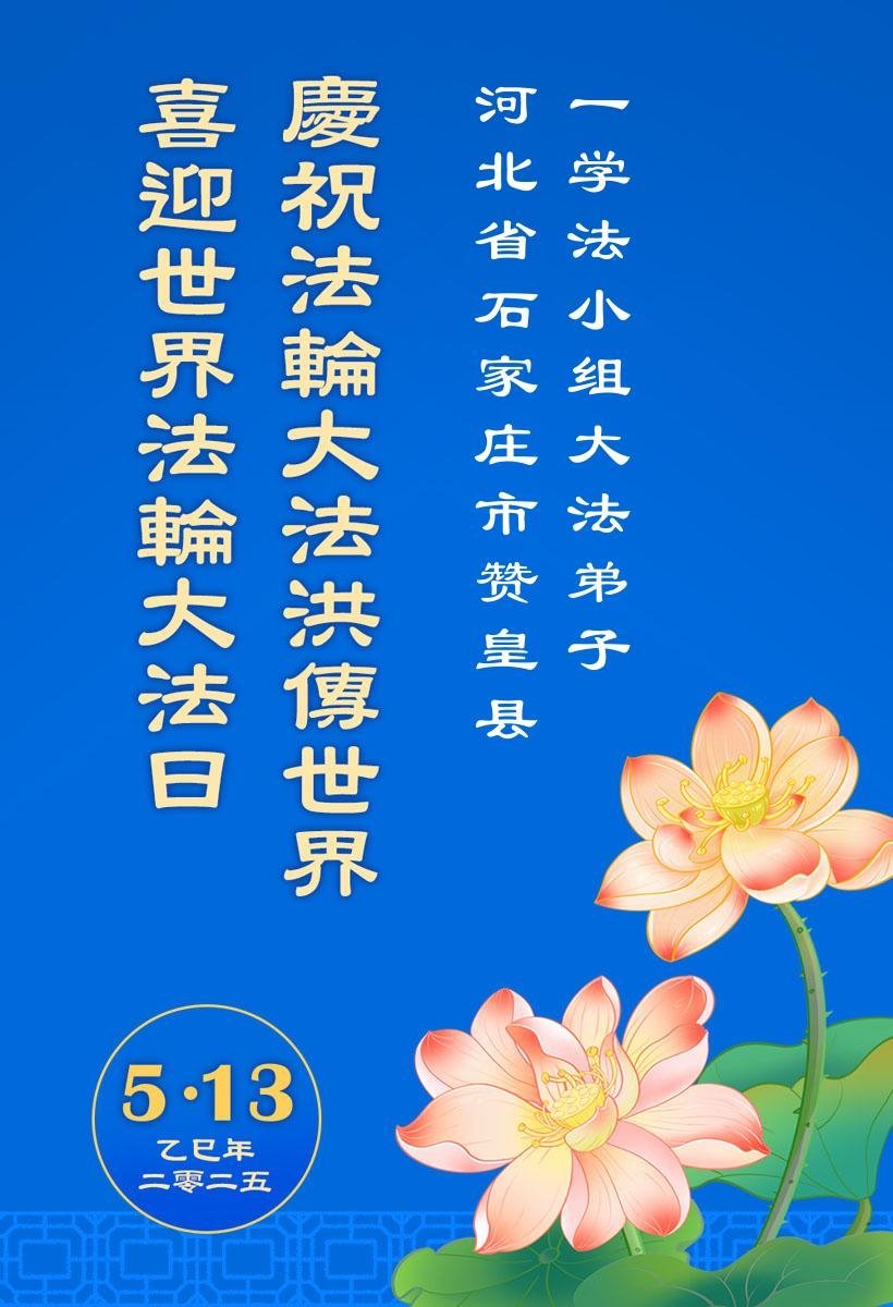河北省石家莊市讚皇縣一學法小組大法弟子恭賀世界法輪大法日!