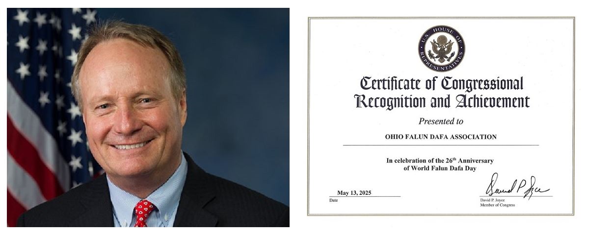 ![]() 圖1:國會眾議員大衛﹒P﹒喬伊斯(David P.Joyce) 頒發褒獎,慶祝世界法輪大法日。 |