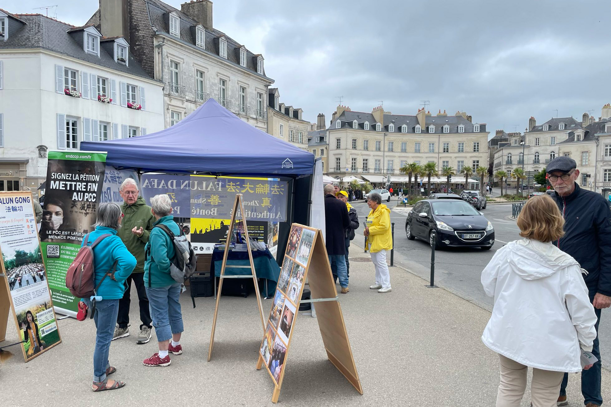 五月二十三日星期五上午,旺代省的法輪功學員到旺代省聖吉勒-克魯瓦德維(St Gilles Croix de vie)的西昂(Scion)市場,發放法輪功真相傳單,與當地居民和遊客交談,介紹法輪功。