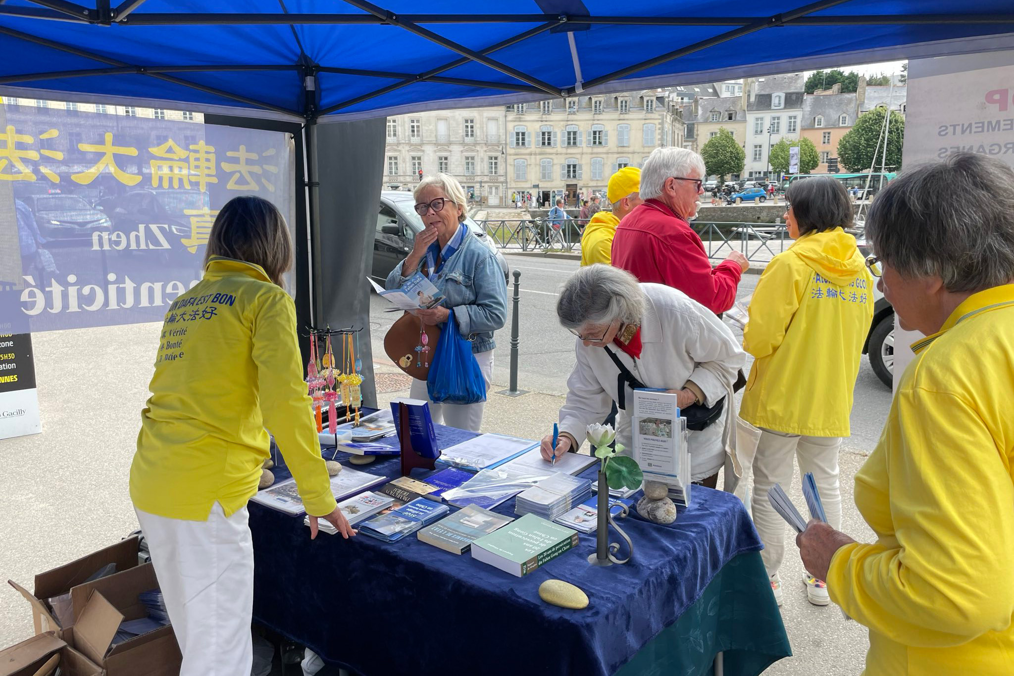 一位來自巴黎的兒科醫生,正在瓦訥度假一週,發現了法輪功及其在中國遭受的迫害。他只聽說過對維吾爾族的迫害。他在展位上停留了很長時間,詳細了解法輪功和有關迫害信息,並拿了很多的數據以進一步學習。