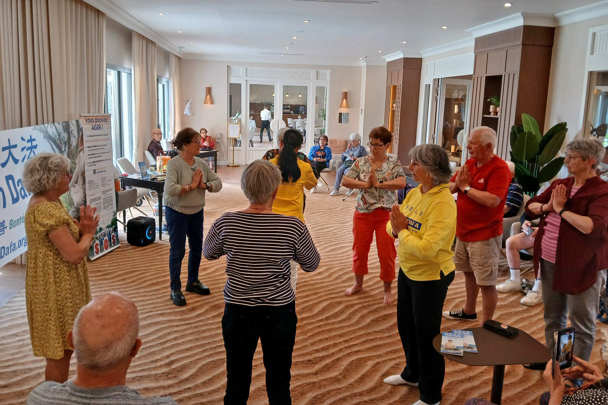 下午,他們應邀來到聖吉勒-克魯瓦德維(St Gilles Croix de vie)的博索萊爾(Beausoleil)老人院介紹法輪功,並向老年人教功。
