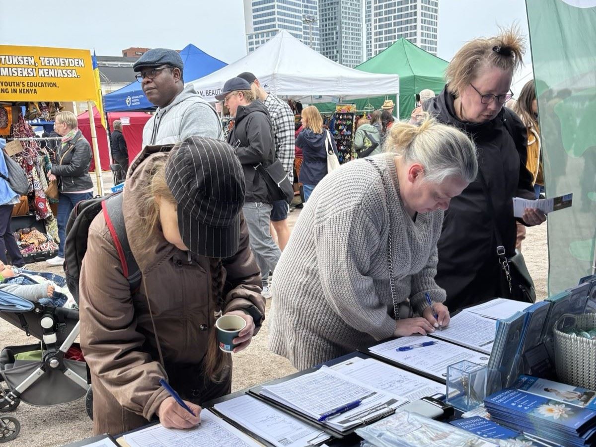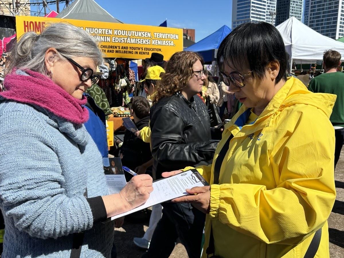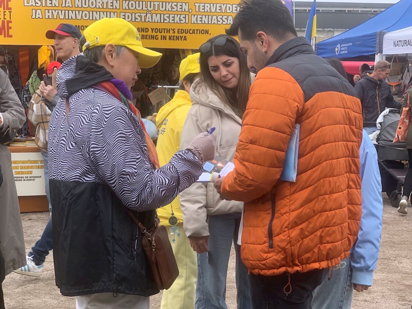 今年,許多民眾在看到芬蘭廣播公司Yle新聞關於中共加劇在芬蘭迫害法輪功學員的報導後,主動前來了解情況並簽名支持。他們對法輪功學員展現出的和平、理性表示欽佩。