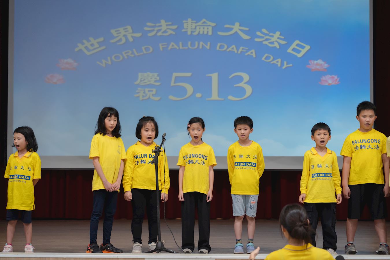 來自各行各業的學員,年齡層從學齡前的稚童,到近九十歲的長者都有。他們集體學法、交流近期在生活中同化真、善、忍修煉提升的體會,並有大法小弟子背誦《洪吟》、歡唱《法輪大法好》歌曲,以表達對師尊感恩之意,敬謝師恩。