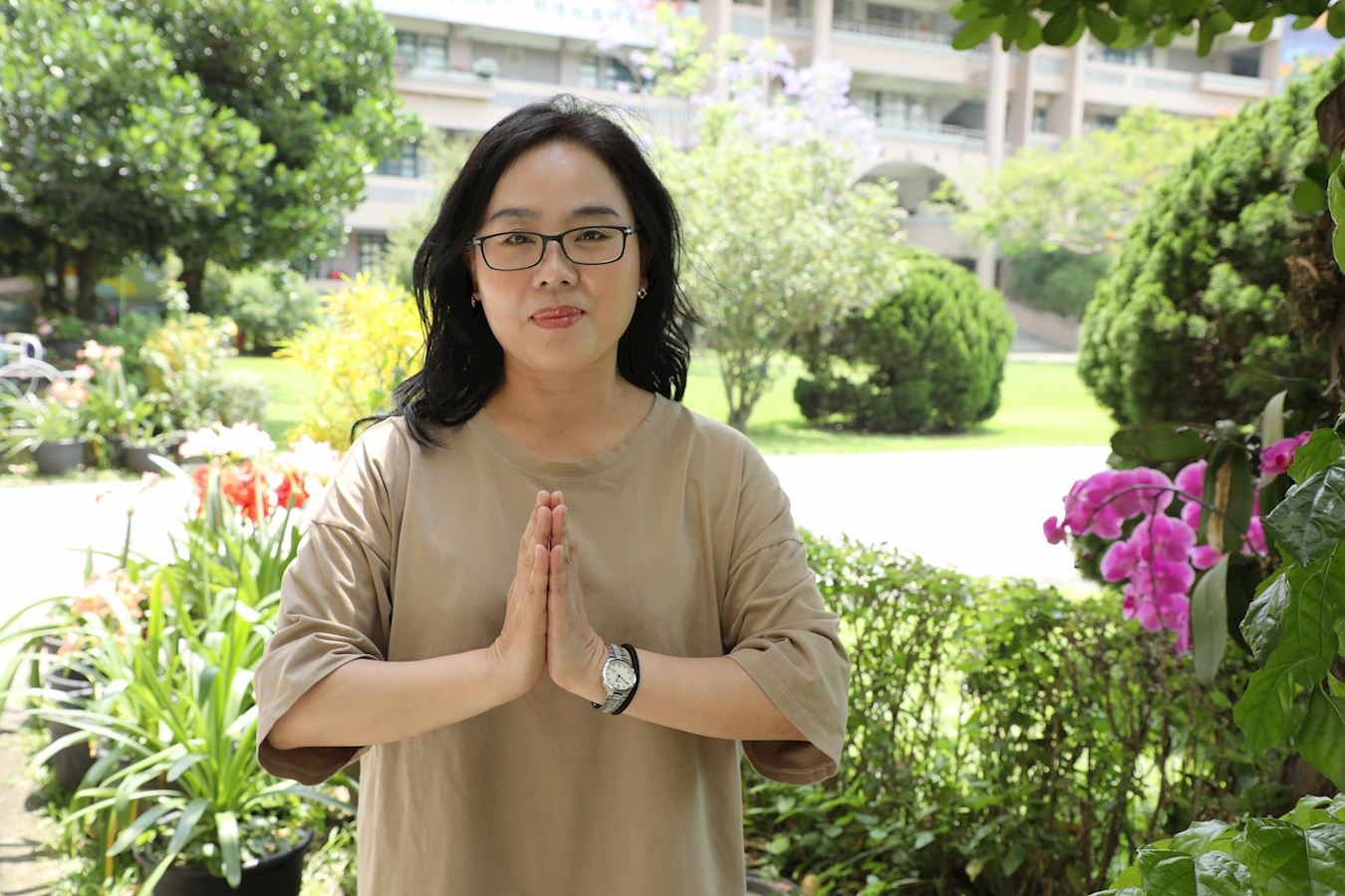 ![]() 圖4:羅茜庭雙手合十說:「會一直堅持善良與傳統,堅修到底以謝師恩。」 |