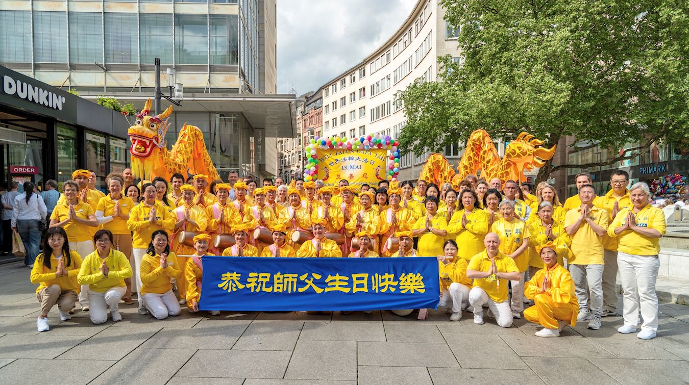 ![]() 圖1:二零二五年五月三日,德國法輪功學員在法蘭克福慶祝即將到來的第二十六屆五•一三世界法輪大法日。全體學員合影恭祝法輪功創始人李洪志師尊生日快樂。 |