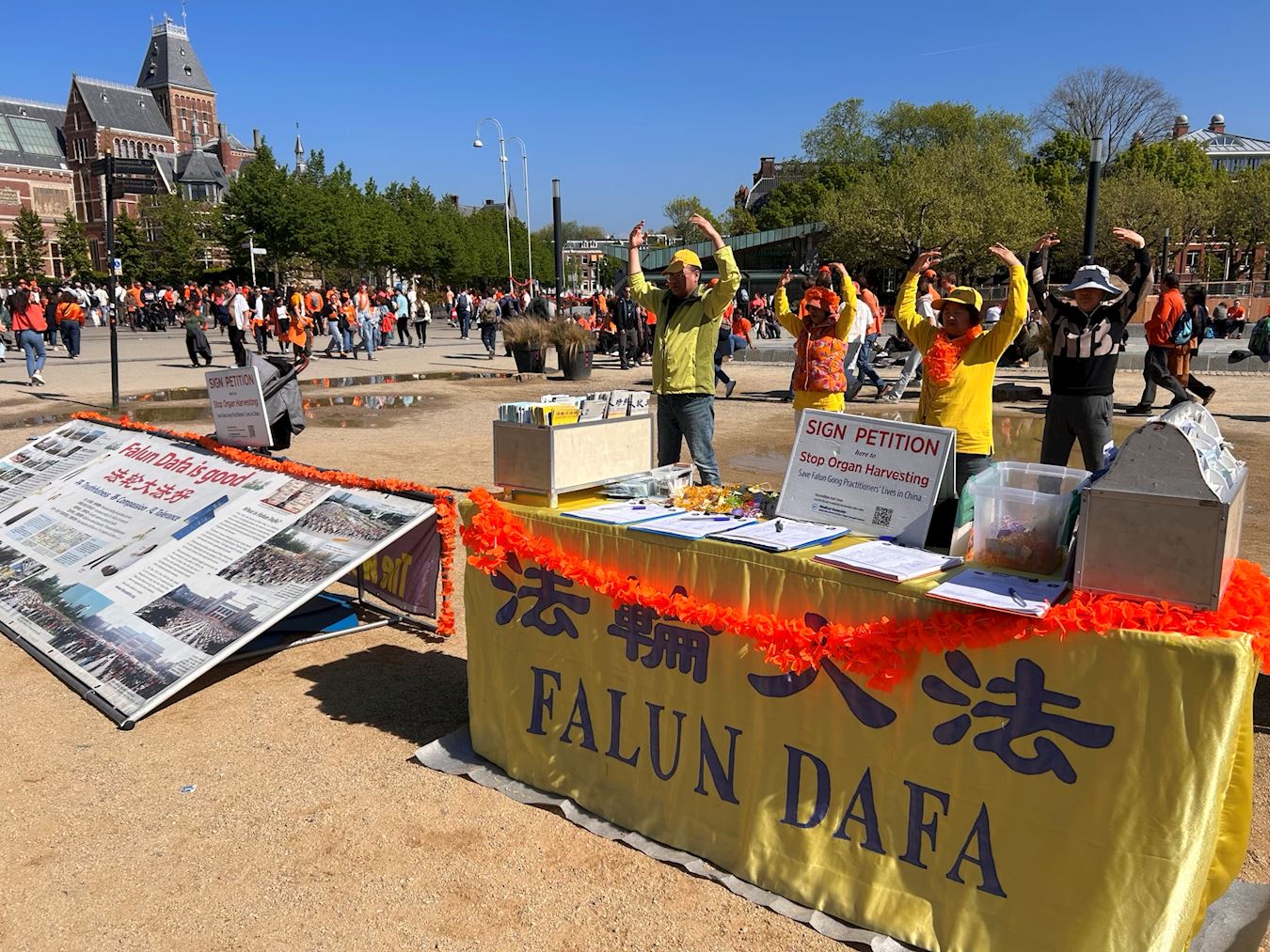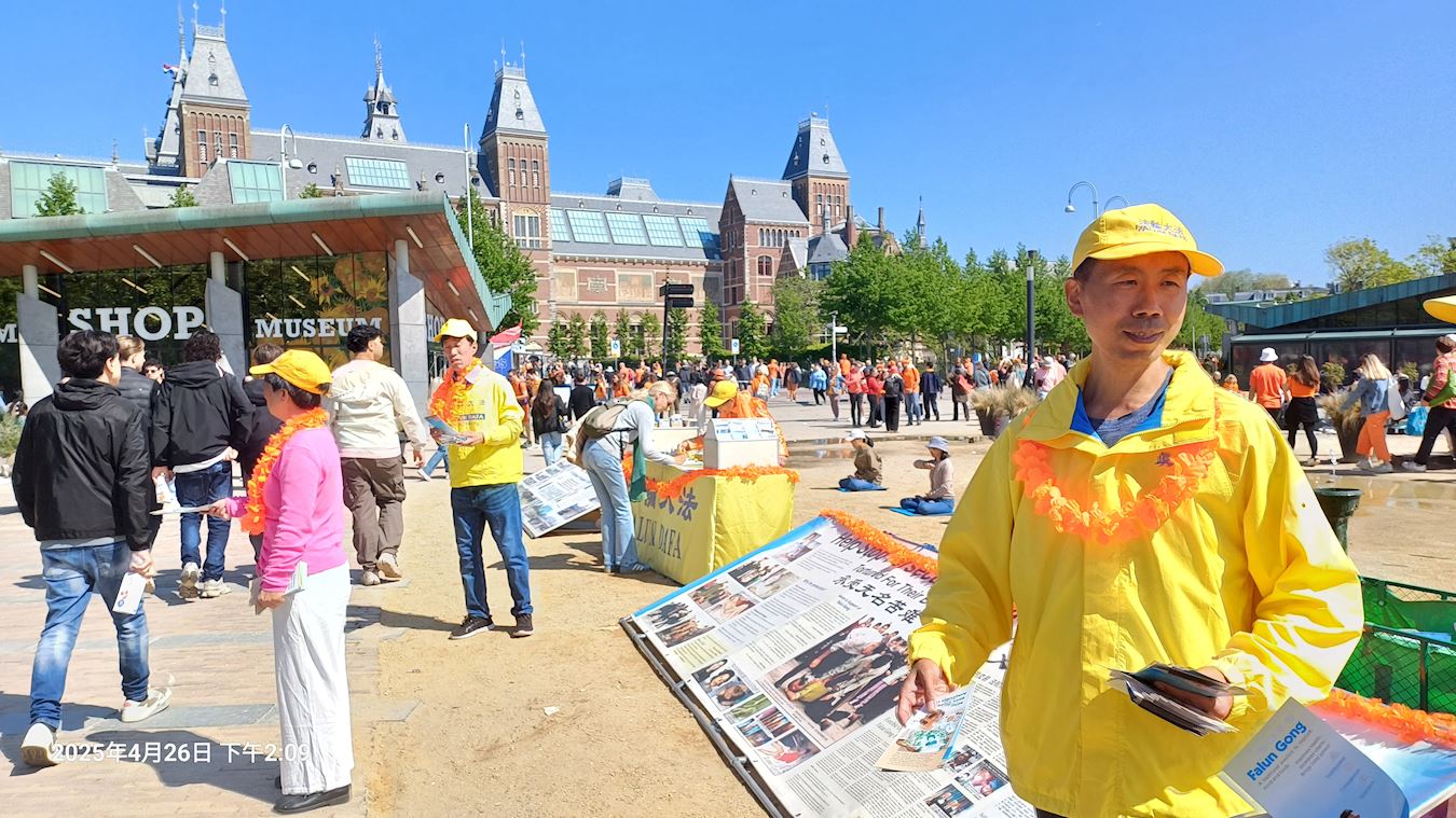 二零二五年的荷蘭國王節定在了四月二十六日,這一天,在阿姆斯特丹市國立博物館門前的廣場上,民眾欣喜的發現了法輪功學員的真相展位。法輪功學員的展位分為三部份,第一部份是法輪大法自一九九二年在中國弘傳、受到褒獎的盛況及法輪功的功理介紹;第二部份是一九九九年至今法輪功被中國共產黨鎮壓迫害「天安門自焚」偽案揭秘及法輪功學員被迫害的實證;第三部份是法輪功學員現場演示功法。
