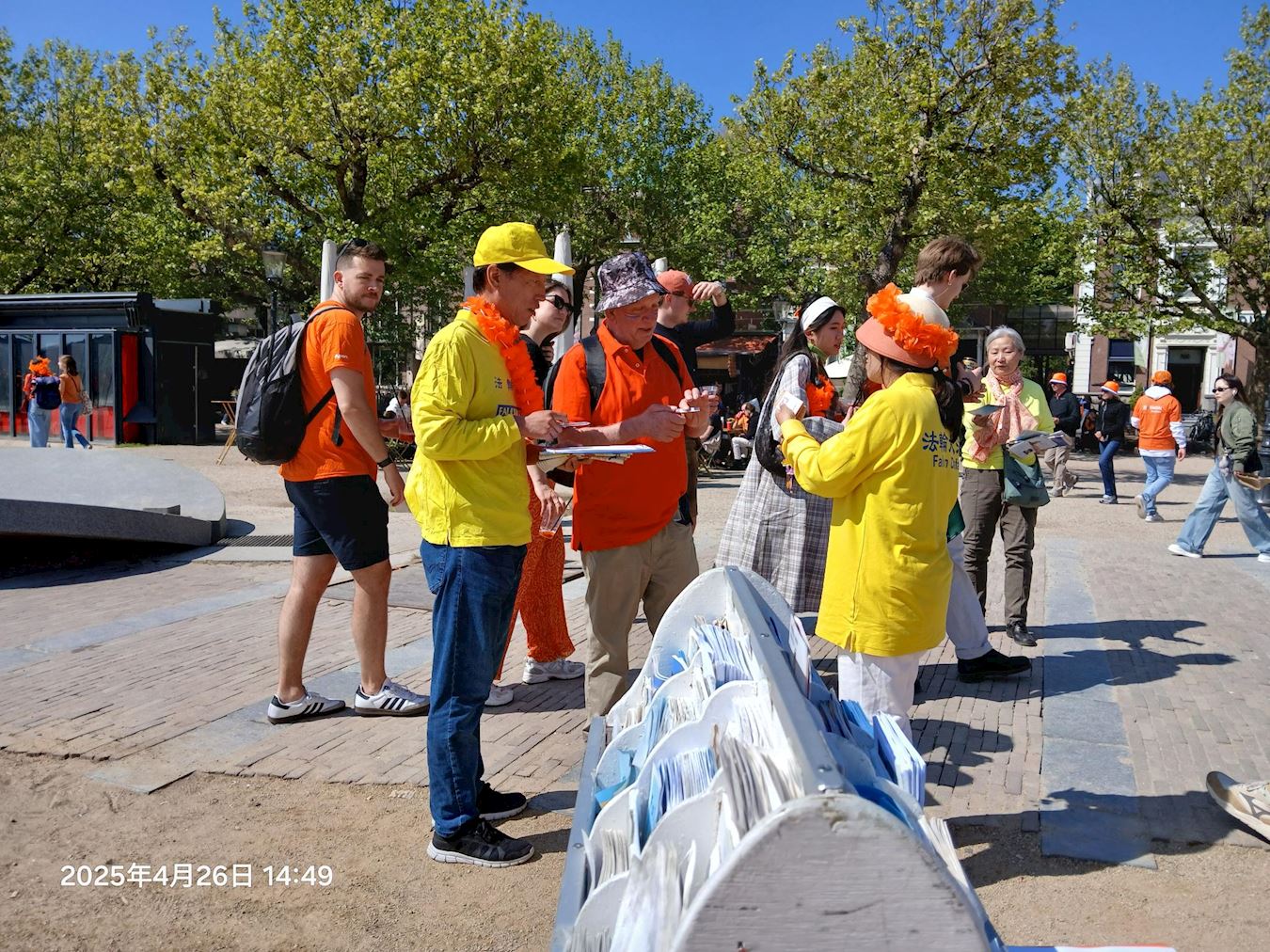 【明慧網二零二五年五月六日】每年的四月二十七日是荷蘭的國王節(King』s Day),這一天是荷蘭現任國王威廉﹒亞歷山大的生日,舉國放假慶祝,街道隨處可見音樂派對、市集、展覽。國王節起源於十九世紀早期,在這天,皇室成員會前往某個城市和居民互動,又因為荷蘭王室的姓是Oranje,荷蘭語為橙色,所以民眾會身著和王室同名的「橙色」服裝,在全國各地熱鬧慶祝。許多國家的遊客都慕名前來參加這個節日。