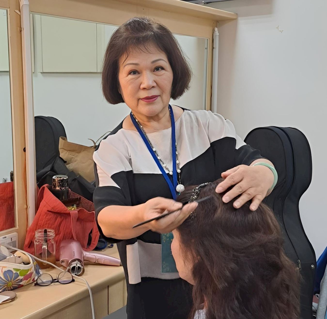 從學徒、助理到創業開店,喬盈始終堅守職責、認真學藝、精益求精。如今,已年逾七旬的她,仍親自為客人梳化,那雙經歷歲月磨練的巧手,依然充滿熱忱與力量。
