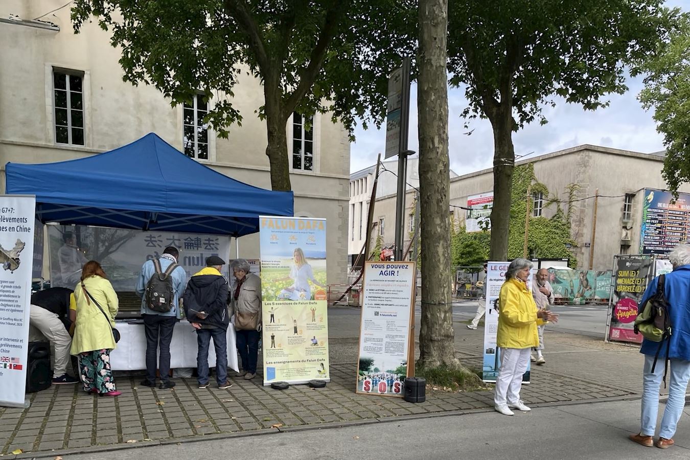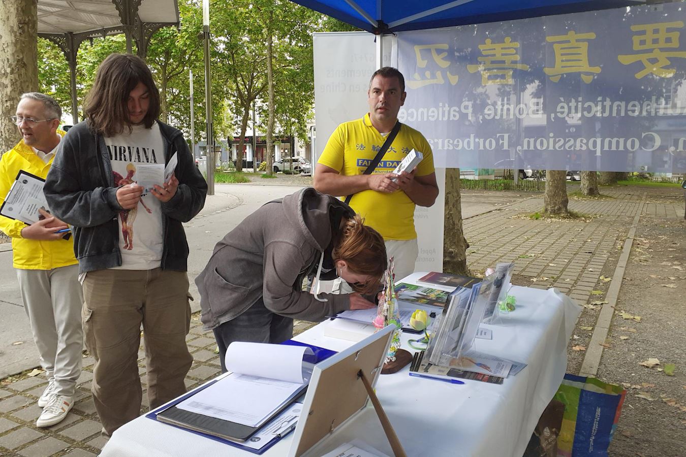 雍河畔拉羅什的兩位女士前來了解法輪功修煉,她們希望學習這些功法,並簽署了請願書,表示這是她們能做的最基本的事情,以對抗這種不公正和中共可恥的行為。