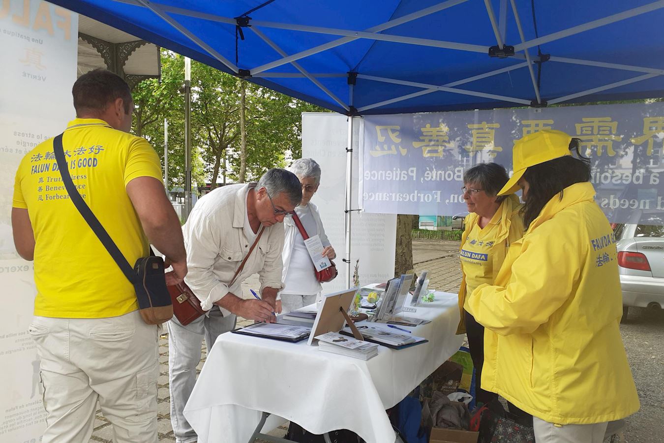 一對剛從留尼汪搬到該地區的夫婦表示,他們已經知道中國的這種迫害,他們的兒子多年來一直在與中國打交道。兒子告訴他們那裏沒有自由,一切都受到控制,很多事情都被隱藏。他們簽署了反迫害請願書。
