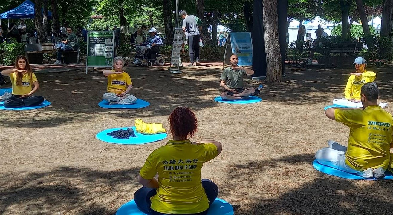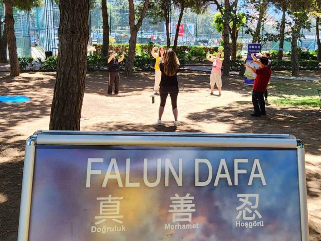現已退休的埃米妮(Emine)參加了煉功。她對法輪功學員說:「我感受到了能量在充份流動,感覺太好了,謝謝你們。」