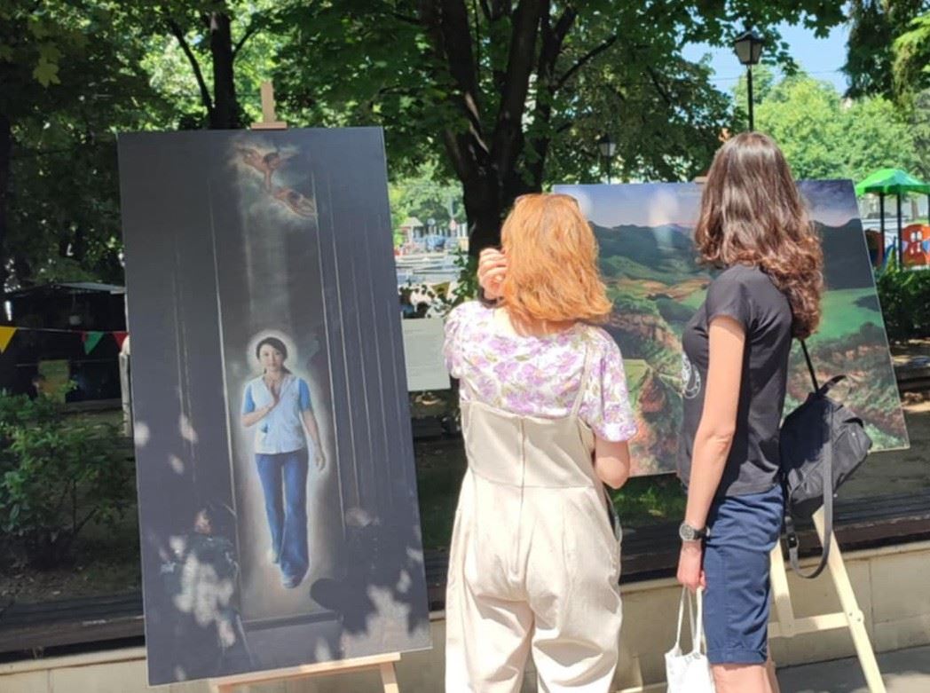 【明慧網二零二五年六月十五日】二零二五年六月七日星期六,保加利亞法輪功學員分別在卡爾洛沃市(Karlovo)的玫瑰節上設立信息展位;在帕紮爾吉克市(Pazardzhik)舉辦「藝術──觸動人心的好方式」畫展,向民眾展示法輪大法的美好、揭露中共迫害法輪功的罪行,引起民眾關注和支持。