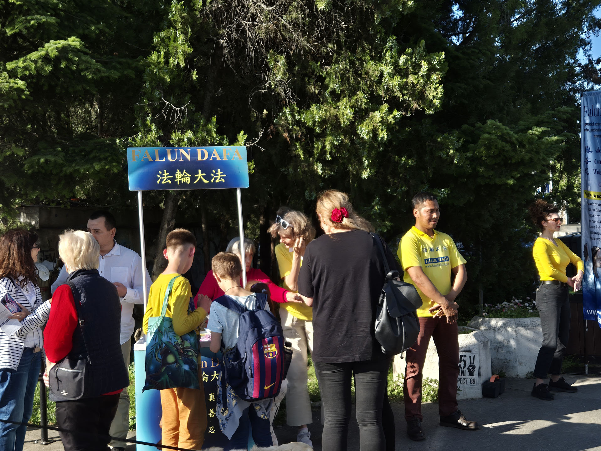 ![]() 圖2:二零二五年六月一日,康斯坦察卡的法輪功信息日活動。 |