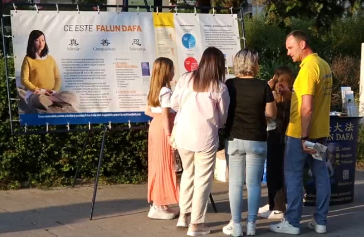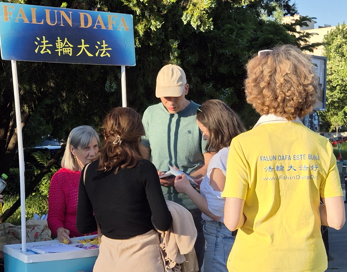 二零二五年五月三十一日,在布加勒斯特,一家人了解了法輪大法,並認真聆聽了關於法輪大法真、善、忍原則及其使人受益的介紹後,很高興。這家人的女士說,這是她第一次聽說法輪功,並表示反對中共迫害法輪功並活摘法輪功學員器官。