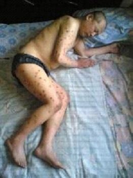 身體多處有煙頭燙傷和疥瘡的痕跡