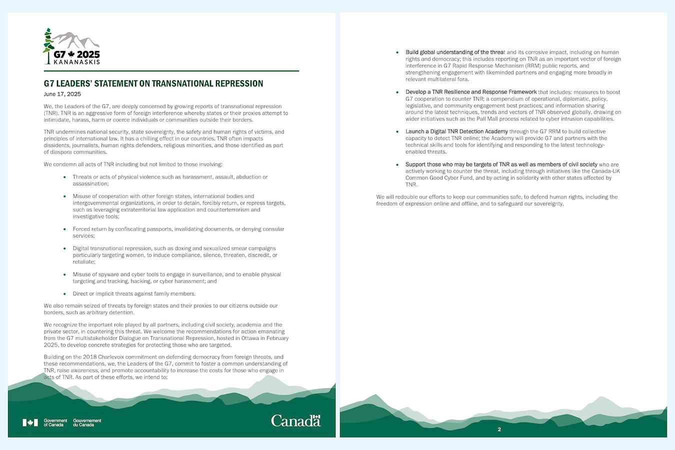 1) G7 Leaders』 Statement on Transnational Repression