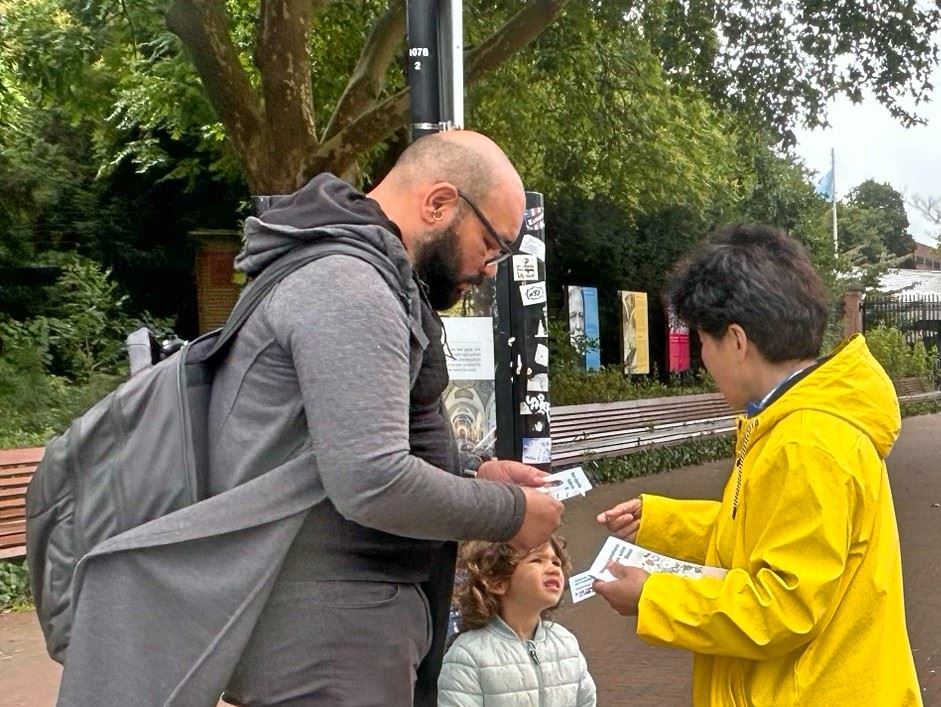 從波蘭來的達米安(Damian)是一個自然保護者,經常在世界各地旅遊。在閱讀了真相展板上的內容後,他對學員說:「我去過很多國家旅遊,日本、泰國,我也去過中國,我聽說過活摘器官的事情,這太罪惡了,必須制止、制止、制止(stop,stop,stop)!」