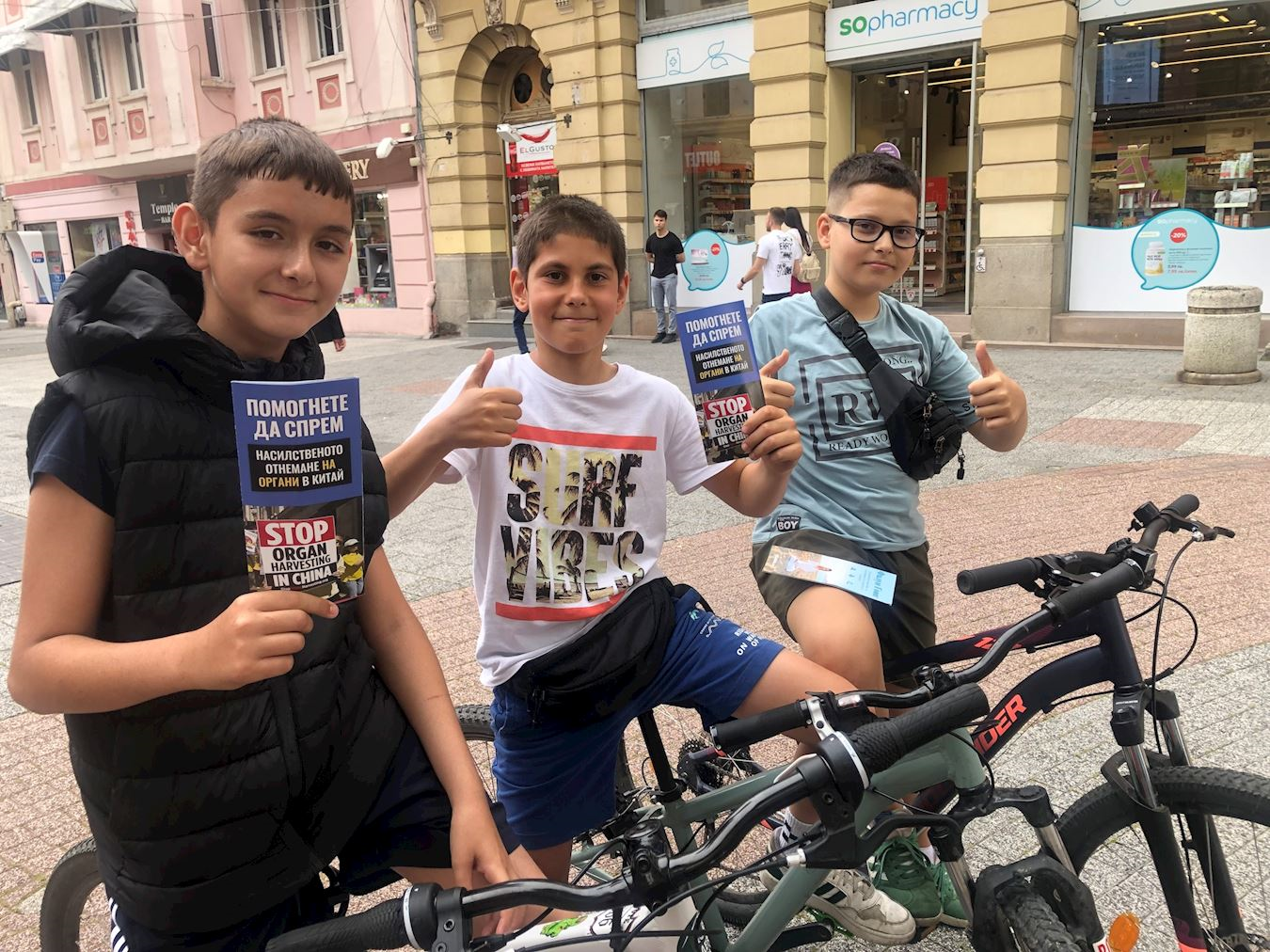 伊維安(Ivian)、莫姆奇爾(Momchil)和喬納森(Jonathan)今年都是十二歲,他們在信息展位前停下來詢問是甚麼活動,學員向他們介紹了法輪功真相,三個男孩對中共的暴力和殘酷感到難以接受,並表示理解法輪功學員講真相的重要性和深刻內涵。