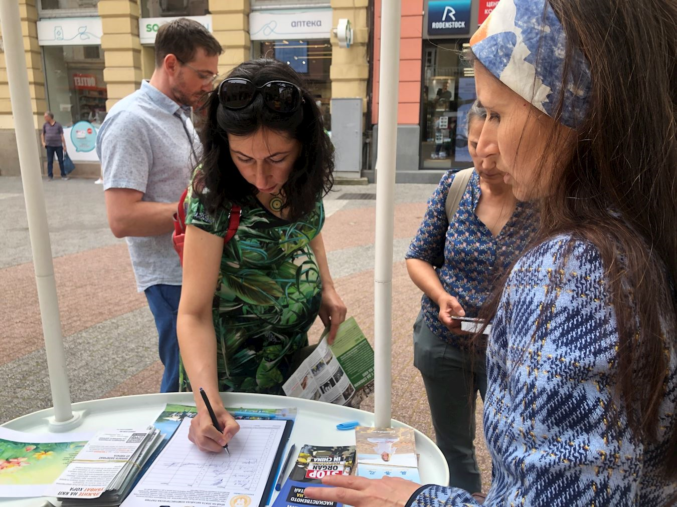 甘卡(Ganka)和埃米爾(Emil)是一對準父母,他們非常認真的聽學員介紹法輪功真相,埃米爾說:「我想簽署請願書,因為我完全反對中共對無辜人民犯下的邪惡罪行!」