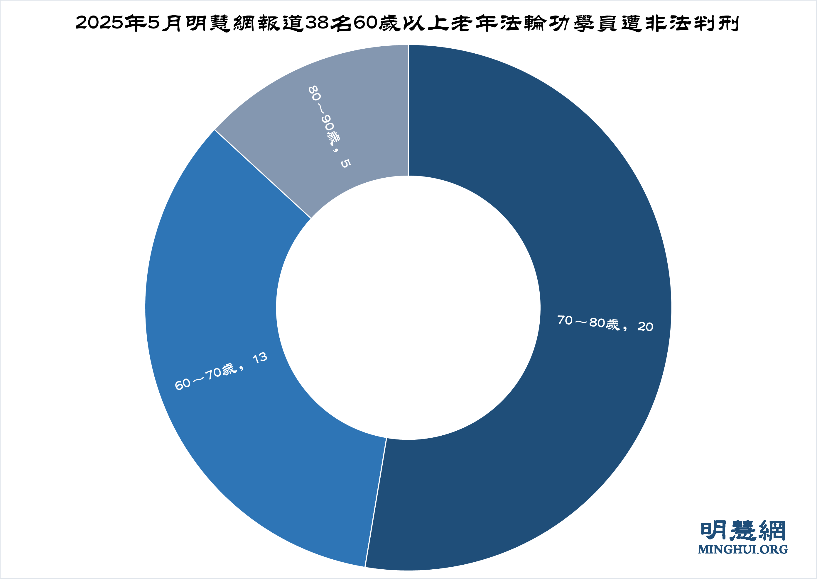 ![]() 圖3:2025年5月明慧網報導38名60歲以上老年法輪功學員遭非法判刑 |