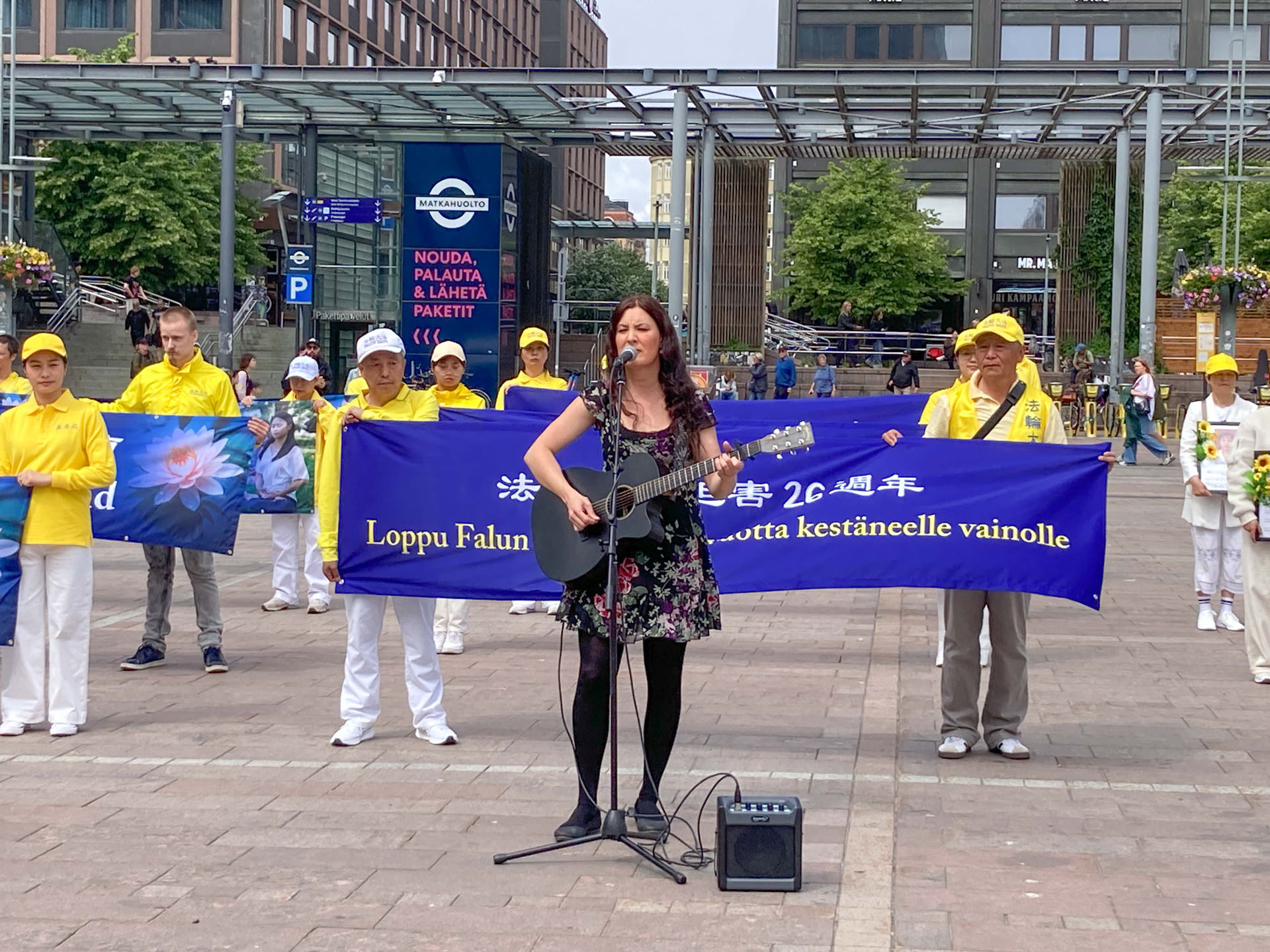 ![]() 圖9:芬蘭歌手安娜﹒科科寧(Anna Kokkonen)現場演唱支持法輪功學員反迫害。 |