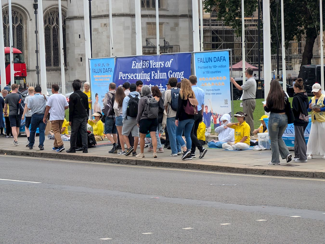 在議會大廈舉辦研討會的當天,法輪功學員在議會外廣場弘法,講真相,吸引了眾多路人駐足了解。