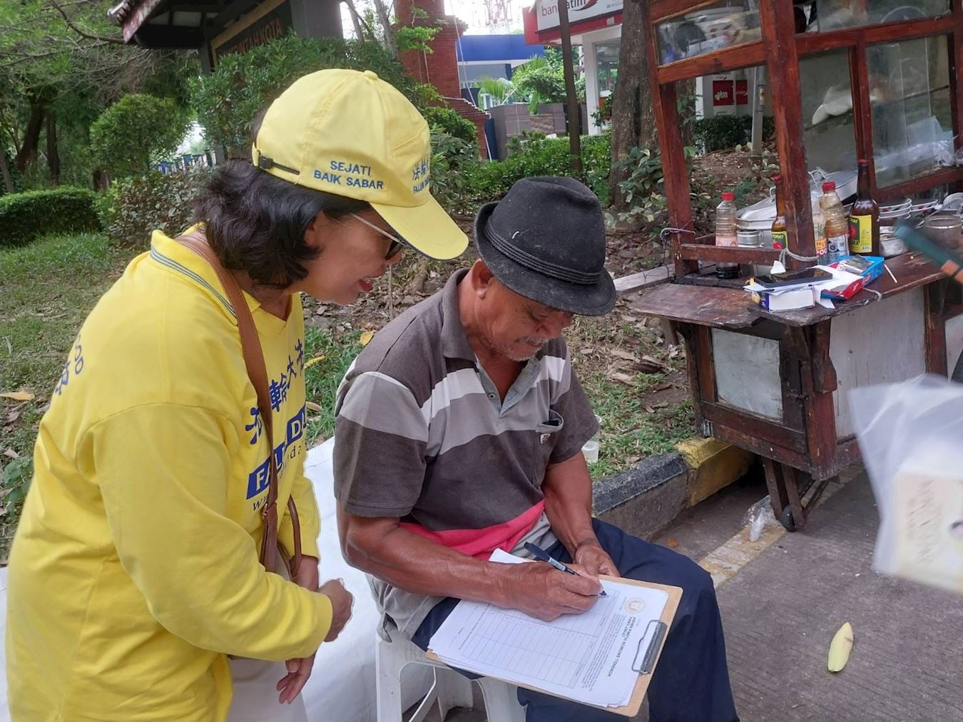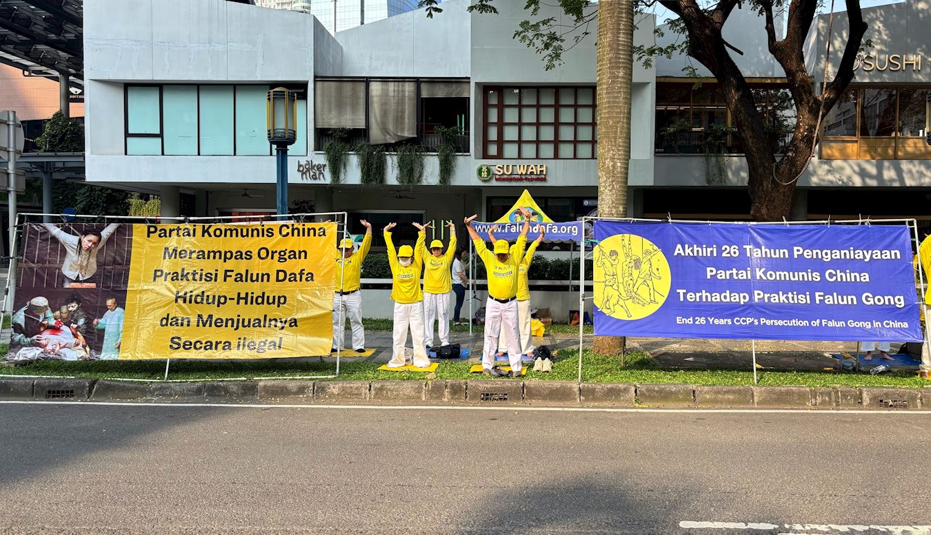 當天,法輪功學員在東爪哇省泗水市的中共領事館前也同步舉行了集會和燭光守夜。除了橫幅展示,學員還在活動地點附近向更多世人講述真相,並在呼籲結束中共迫害及活摘法輪功學員器官的請願書上徵集簽名。