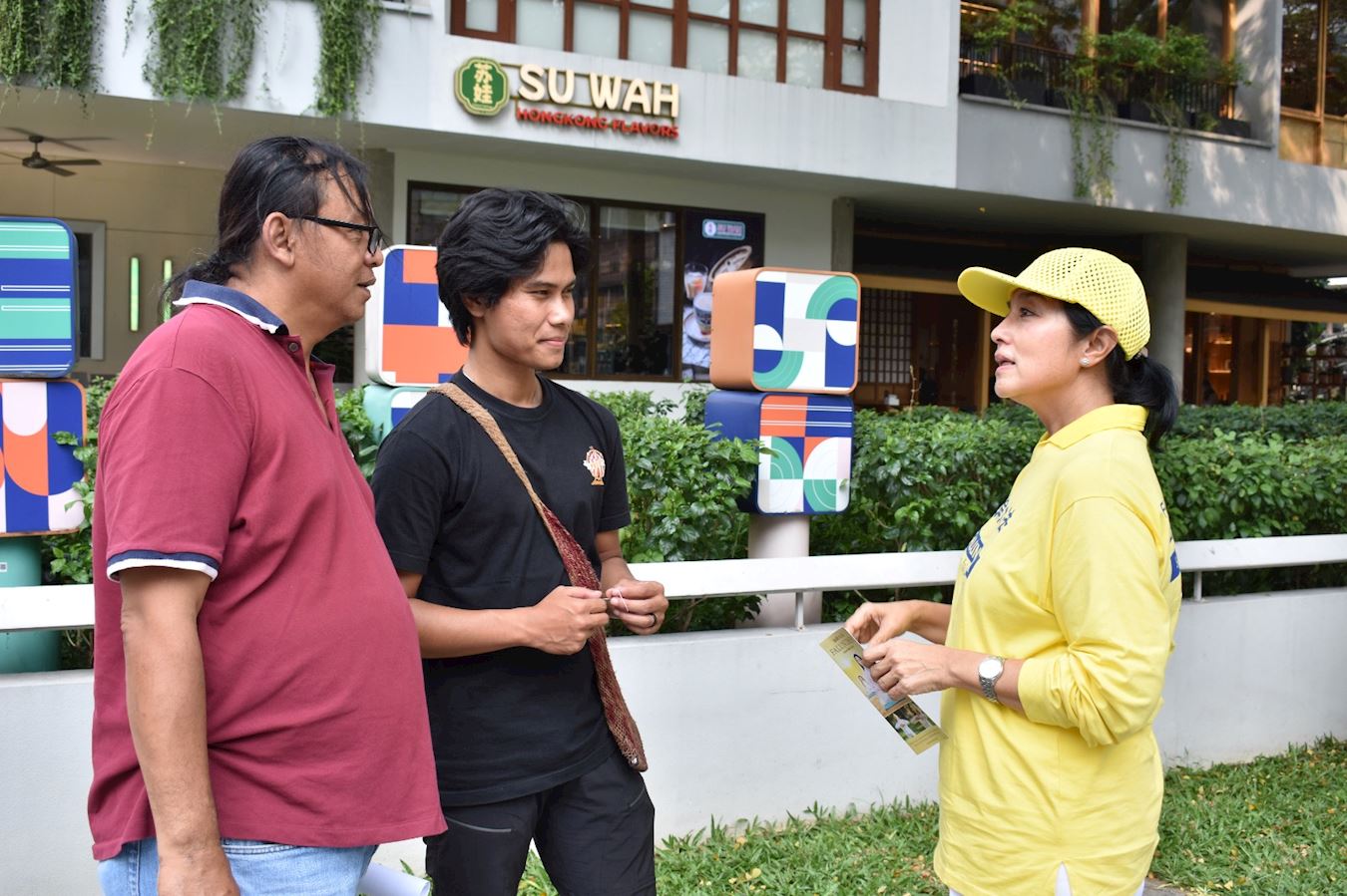 另一位路人出於好奇走近學員,詢問為何舉辦這場活動。他還詢問學員們在活動期間是否遭到干擾,並向學員表達了鼓勵和支持。