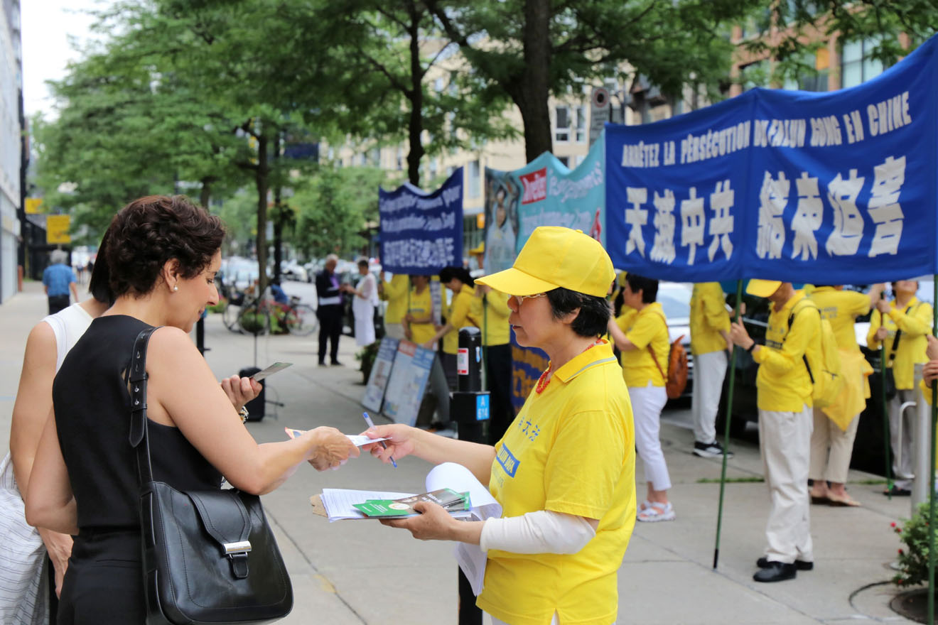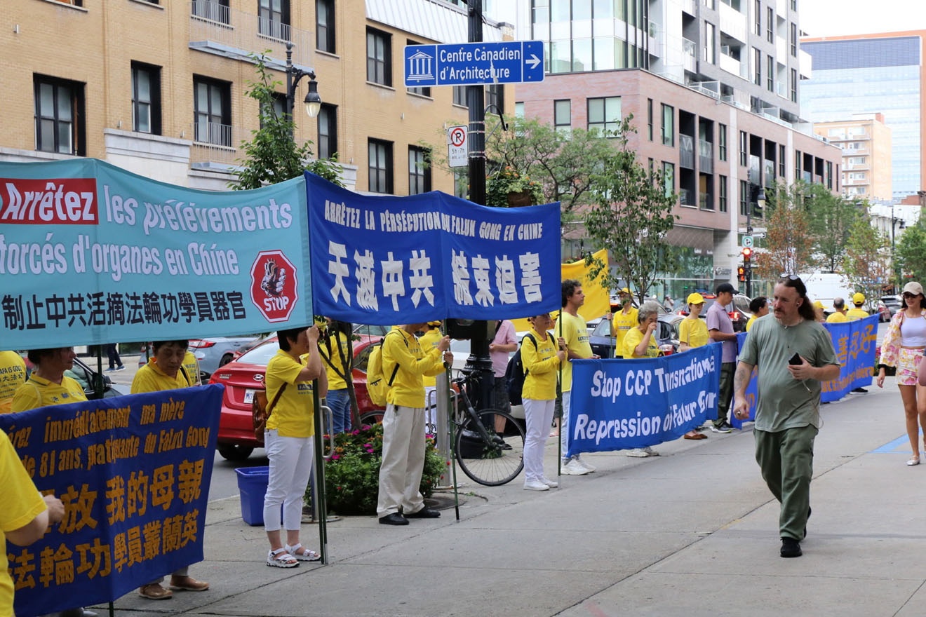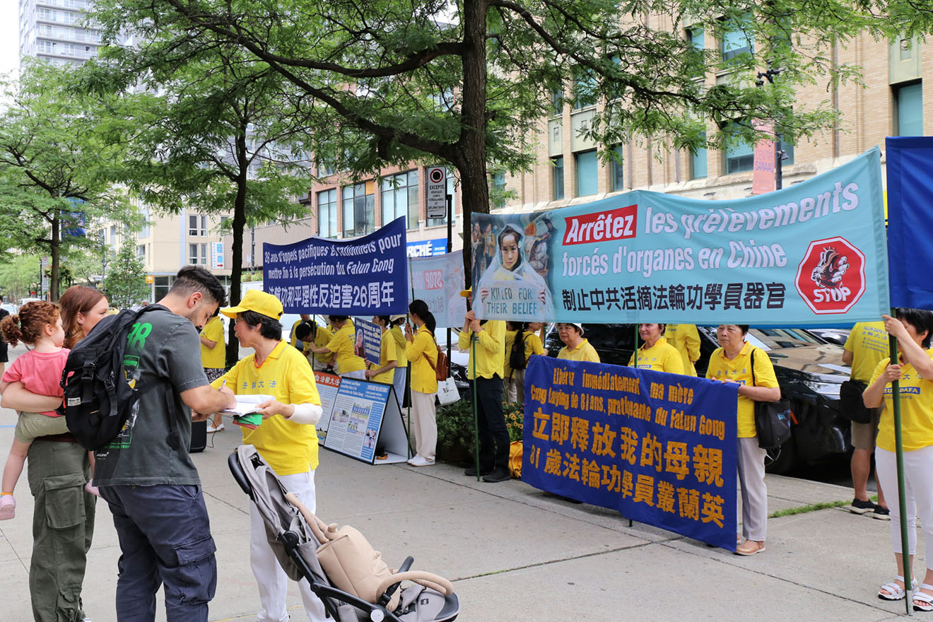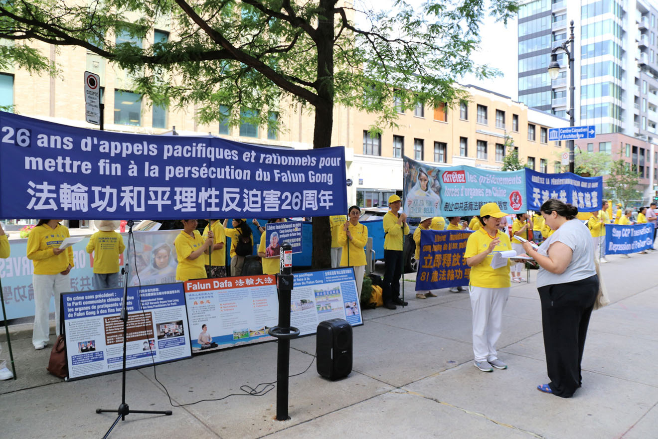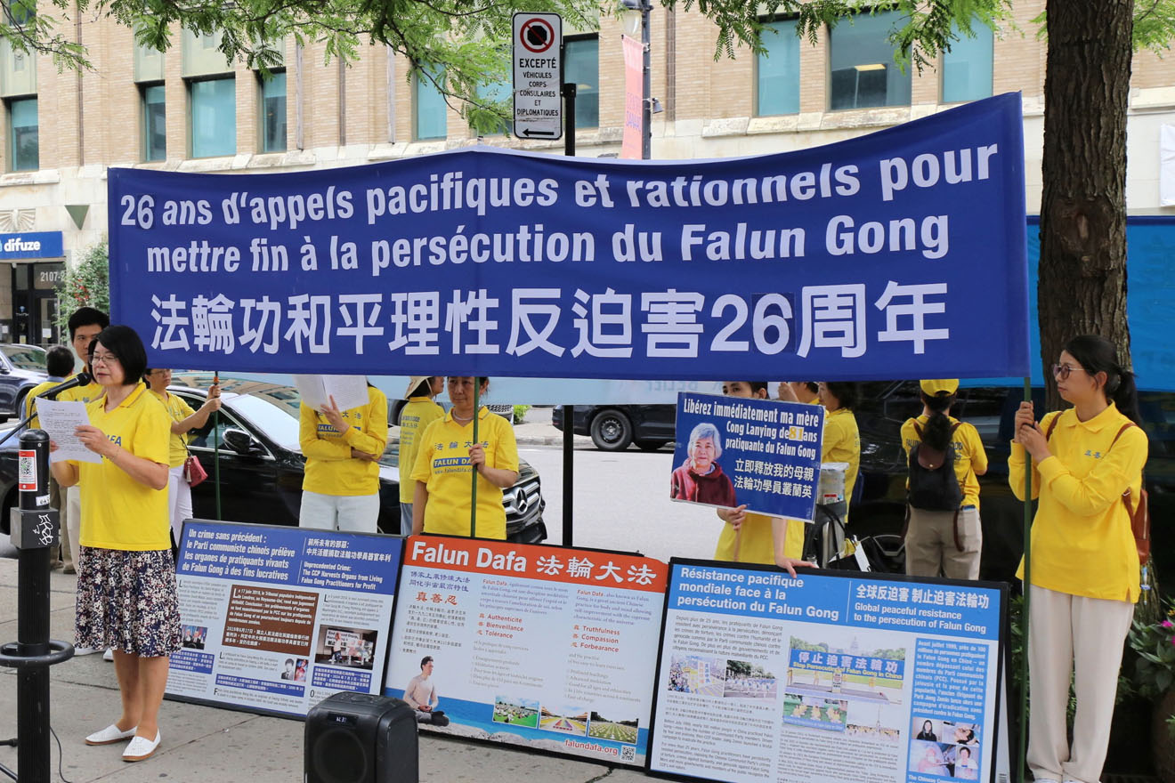 ![]() 圖1~2:二零二五年七月十七日,在中共對法輪功的迫害持續二十六年之際,法輪功學員在蒙特利爾中領館前舉行反迫害集會。 |