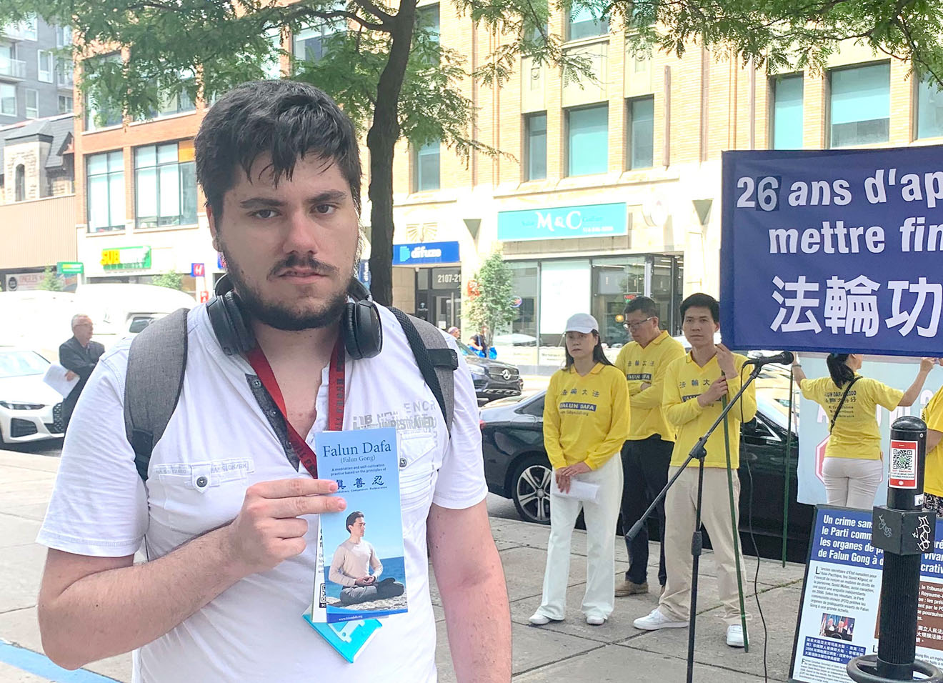 市民泰勒(Tyler)表示,以前曾接到過法輪功學員的傳單,對發生在中國的事情有所了解,「我覺得真善忍很好,你要求真,你要求善,要對別人好,這是根本的人性」,但是,「共產黨是極權統治者,他們不在乎別人。」