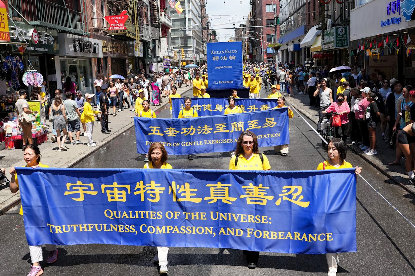 ![]() 圖5~7:二零二五年七月二十日,部份神韻藝術家和法輪功學員在曼哈頓華埠舉行法輪功反迫害26年大遊行。 |