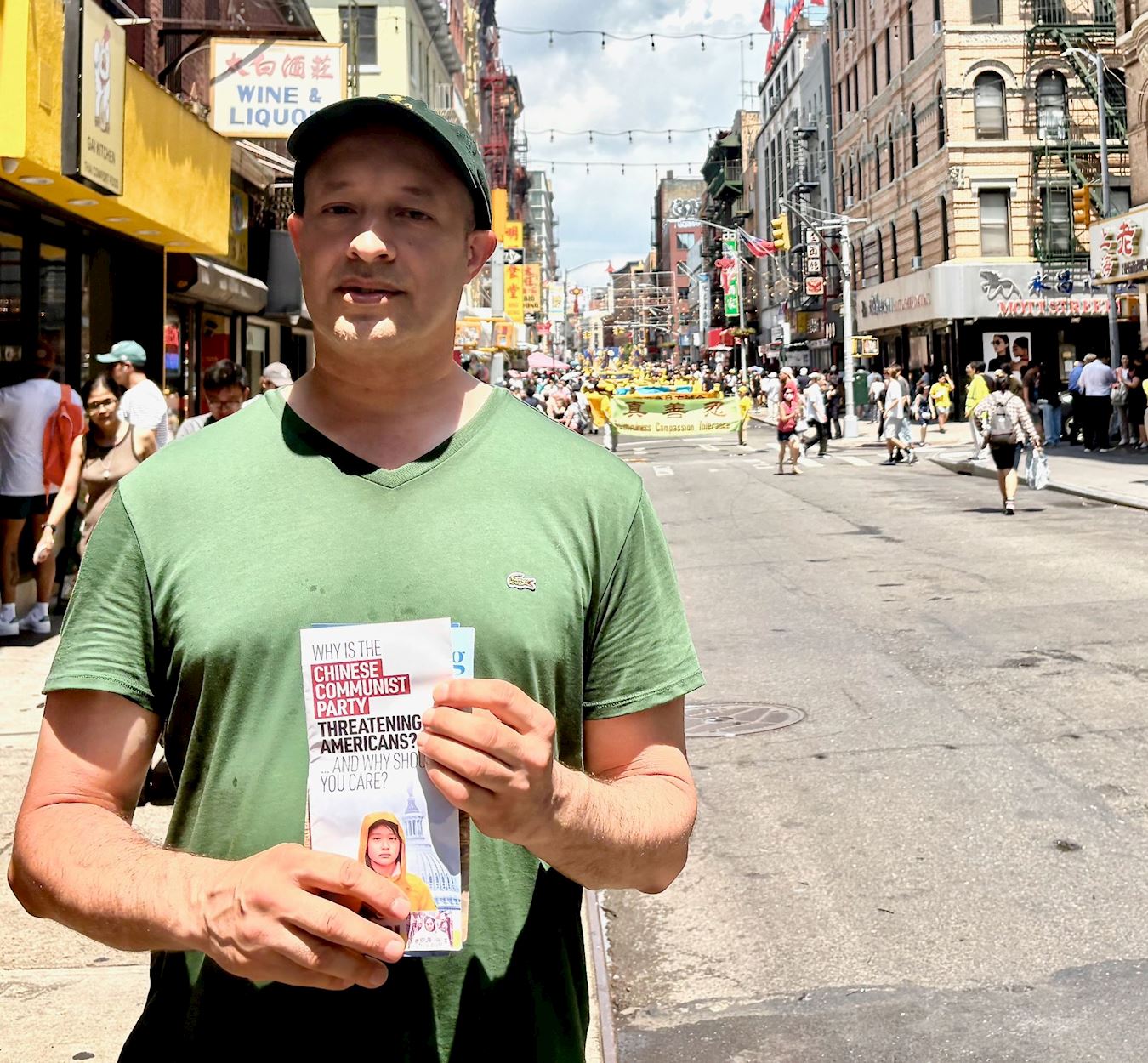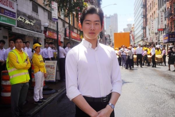 埃瑞克・梅(Eric Mei)是曼哈頓華爾街的金融師,也是紐約土生土長的華裔。他以前也曾看過法輪功學員的遊行,但今年的遊行規模之大還是令他震驚。