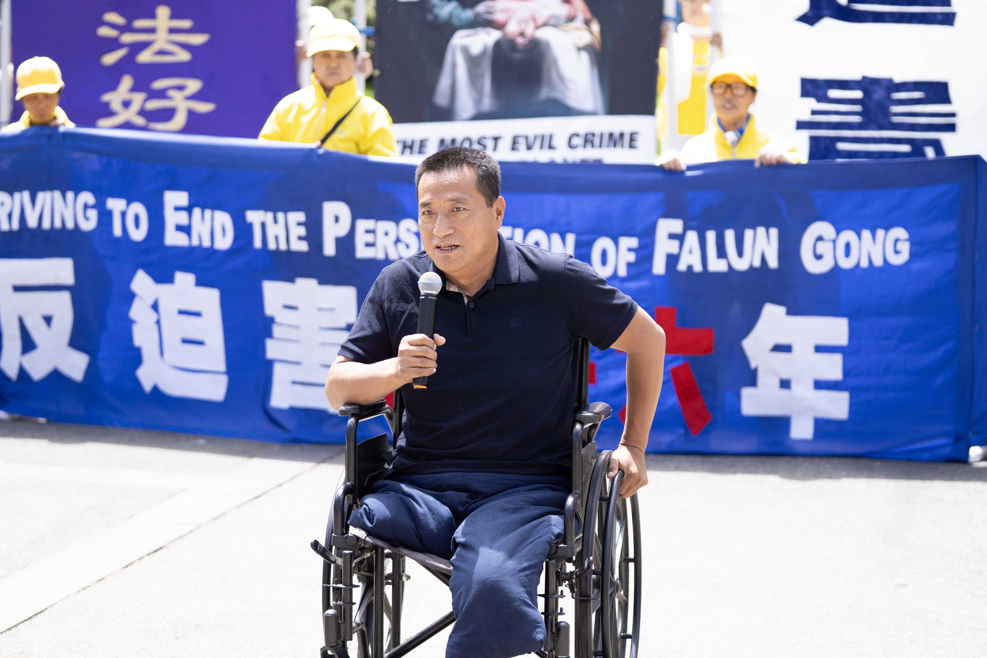 他說,「中共對法輪功的迫害極其殘忍,許多人被迫害致死,我們今天在這裏揭露中共的暴行,將來我們要審判中共。」