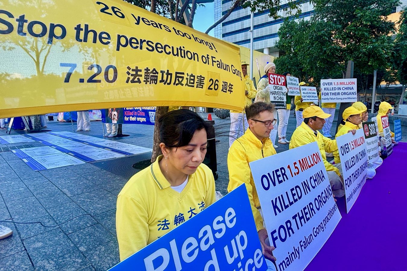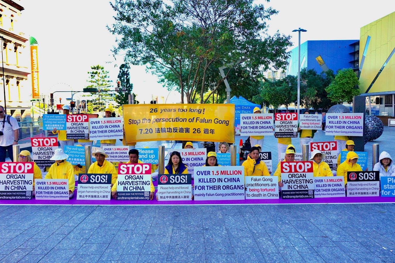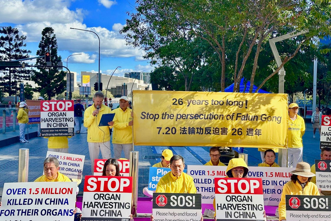 法輪大法昆士蘭佛學會發言人約翰﹒道維(John Dowie)在發言中表示:「正是二十六 年前的今天,中共對法輪功發動了殘酷和非人道的迫害,法輪功是一種基於 真、善、忍的精神修煉。這場迫害在中國各地造成了任意逮捕、酷刑、殺戮,甚至大規模的活摘器官,摧毀了數百萬法輪功學員及其家人的生活。」