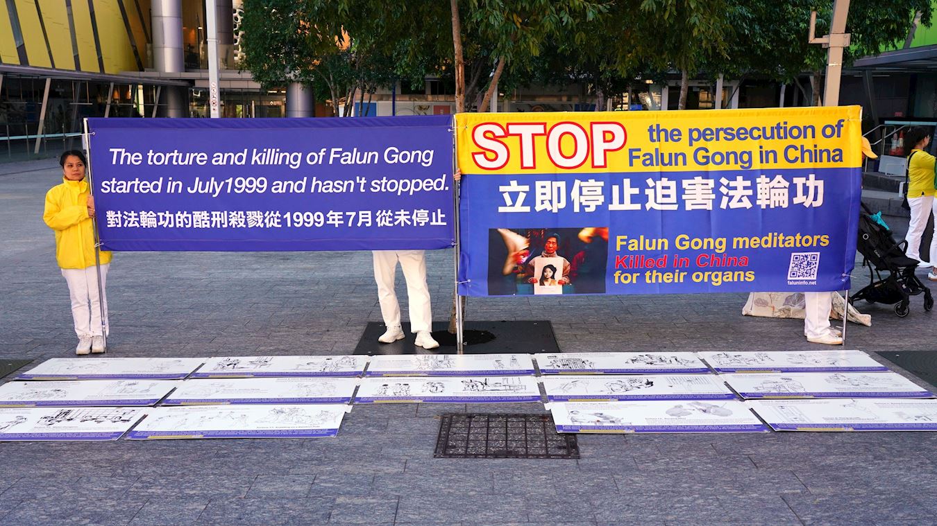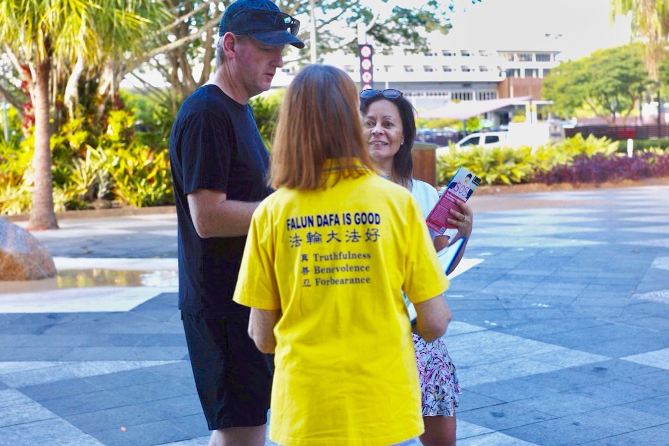 來自凱恩斯地區的學員們聚集在凱恩斯濱海藝術中心,與社區居民分享法輪大法的美好,並講述了中共對法輪功的迫害已持續了二十六年之久,這場迫害至今仍在發生著。