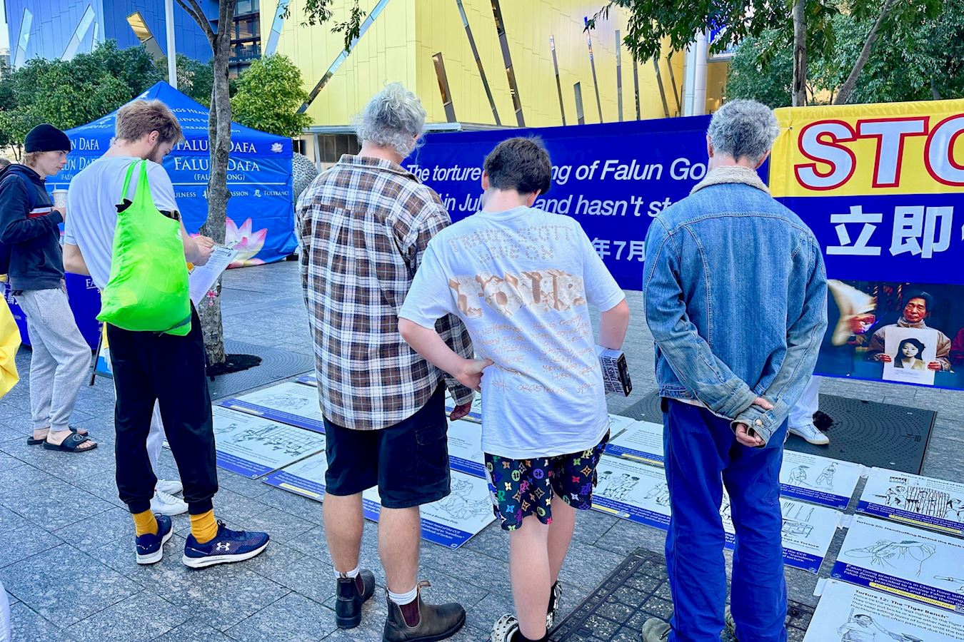 在中國大陸受到過中共酷刑折磨的法輪功學員結合自己的親身經歷,向他們介紹了法輪功學員遭受酷刑的圖片展,凱蒂和丹尼深受震驚。凱蒂說:「沒有想到中共這麼壞,用這麼殘忍的手段迫害一群好人,在澳洲這樣的自由社會裏,這是無法想像的。」