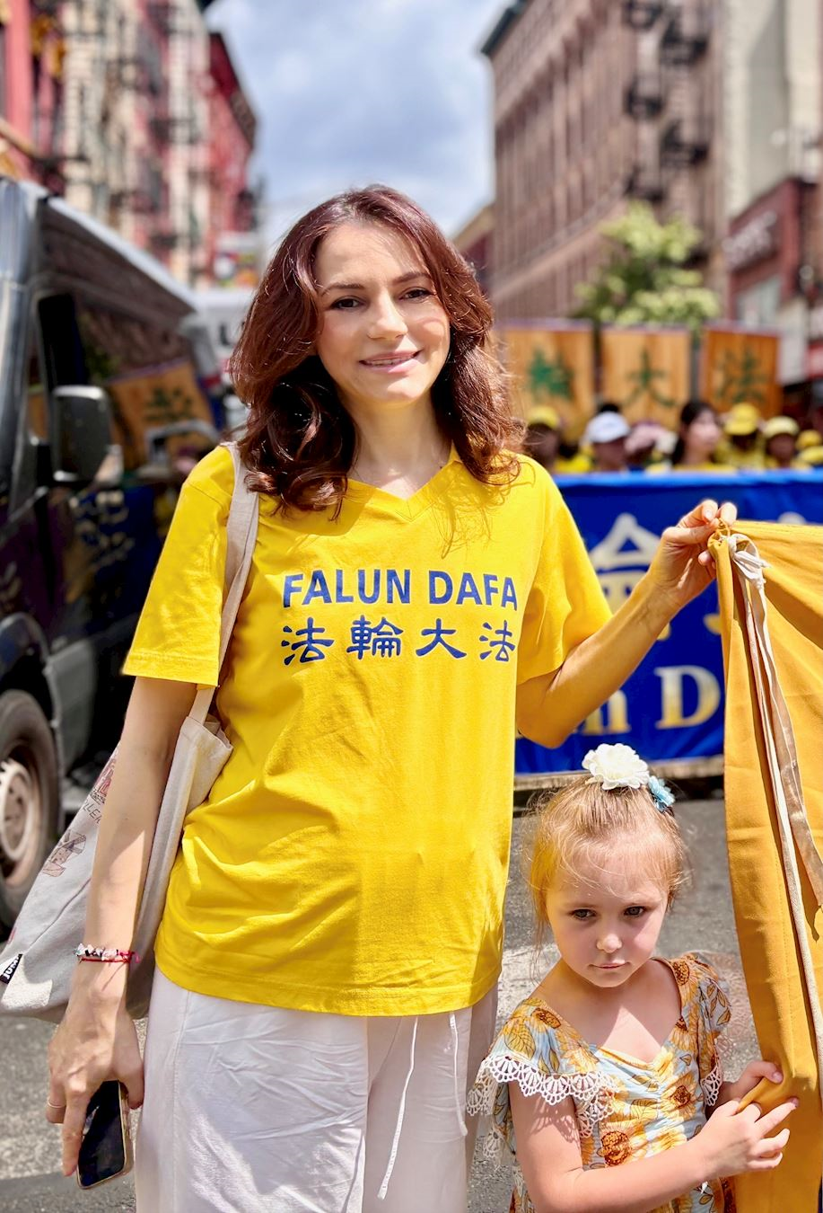 今天來參加遊行,她說:「我想讓唐人街的中國人知道,他們其實有一個非常好的選擇,希望能幫助他們了解法輪大法。」