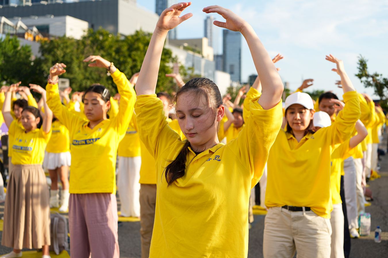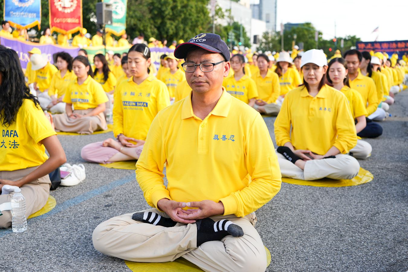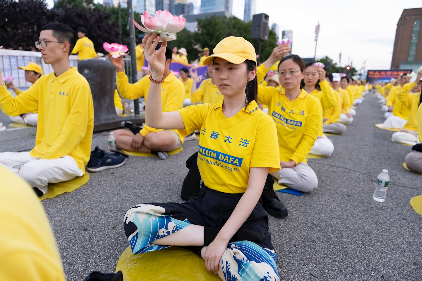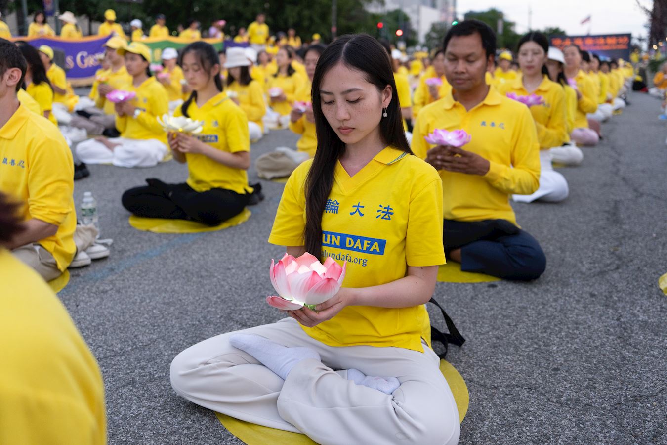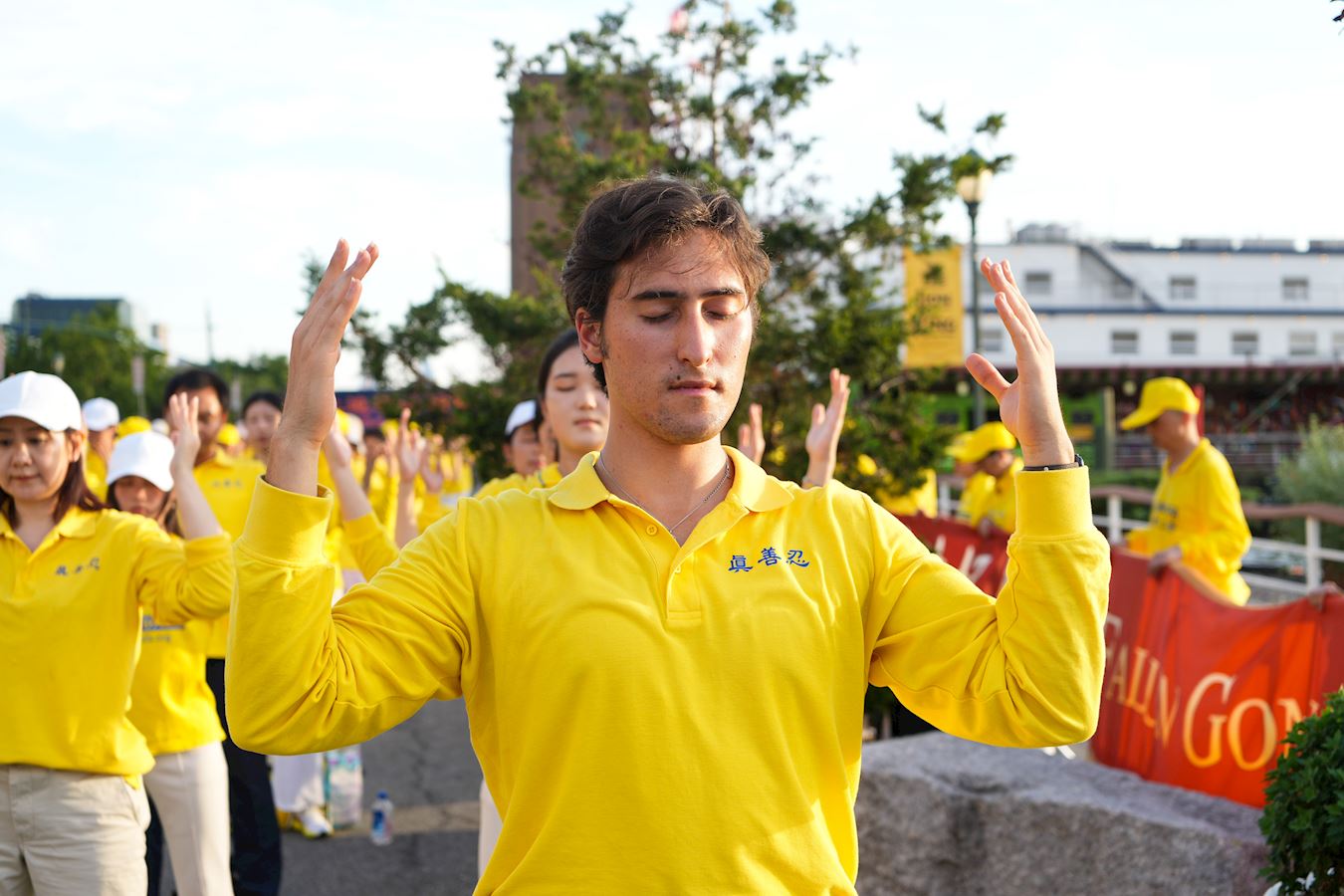 【明慧網二零二五年七月二十三日】二零二五年七月二十日傍晚,紐約部份法輪功學員在中共駐紐約領事館對面的哈德遜河畔,舉行燭光夜悼,悼念二十六年來被中共迫害離世的法輪功學員,呼喚正義良知,要求中共停止迫害。 來自不同族裔、不同年齡的法輪功學員們用橫幅築起一道道「真相長城」:「法輪大法」「 真、善、忍」「停止迫害法輪功」「制止中共活摘法輪功學員器官」「打倒中共惡魔」「慶祝4.49億人退出中共黨團隊」「法輪大法洪傳世界」。同時集體煉功,向過往民眾展示平和的法輪功功法,講述法輪功真相。