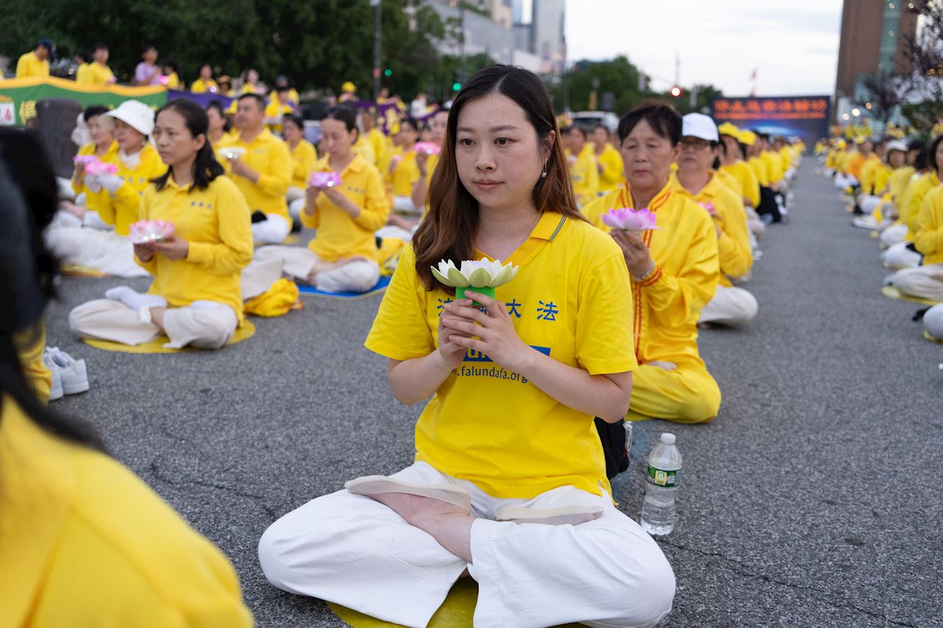 感人的歌聲在哈德遜河邊迴盪:「一點點燭光,一首首史詩,講述著修煉者的慈悲堅強……」「讓我們肩並肩,就讓慈悲把邪惡淘汰,讓善良擁有未來,我們的祈禱,讓一切改變;我們的真誠,讓一切改變……」 夜幕低垂,幾百位法輪功學員靜靜燃起燭光,希望傳遞法輪大法的美好、真相和善良,解體中共邪惡,讓法輪大法的真理之光照亮世界。