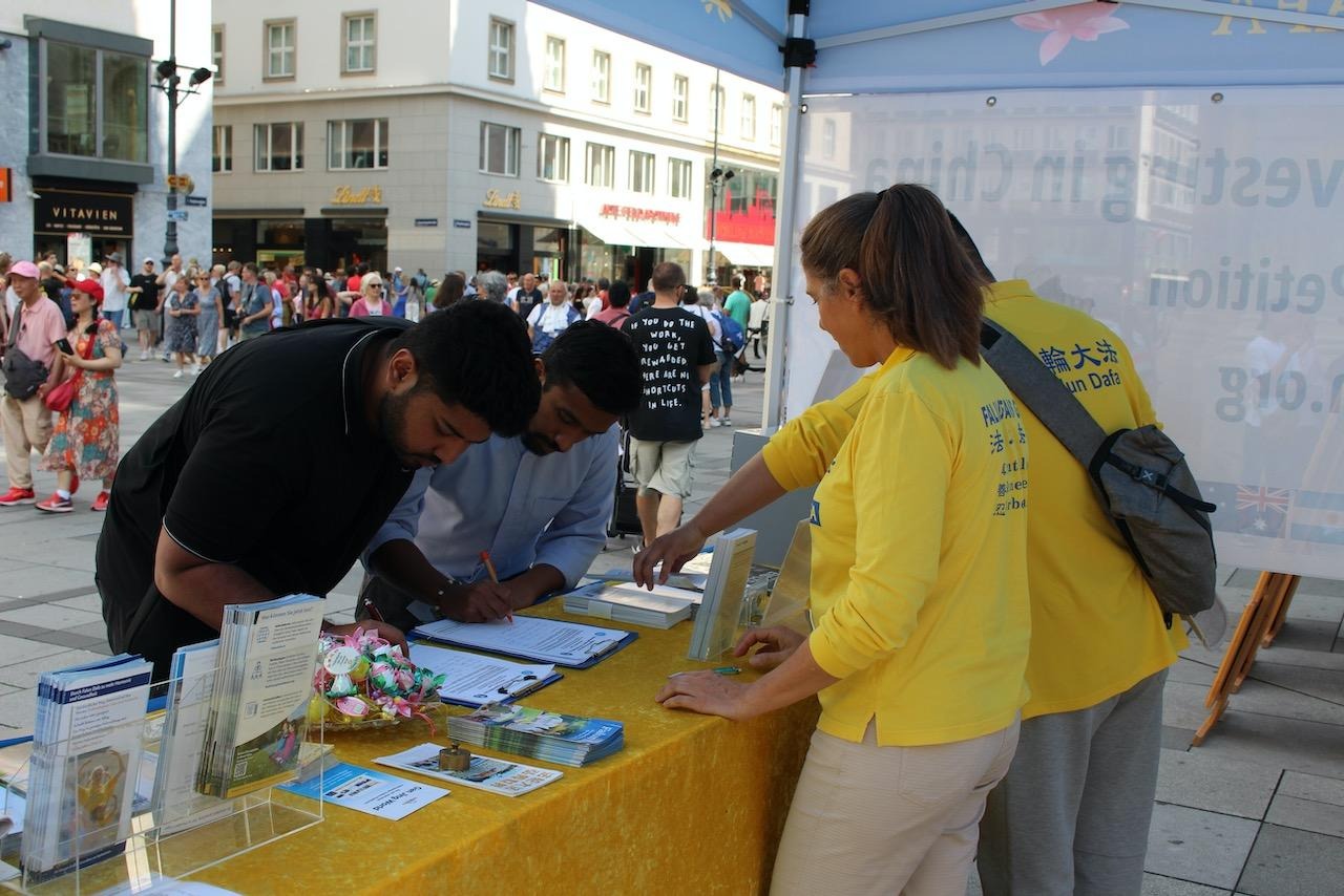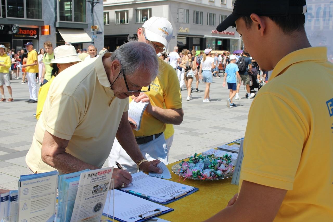 當天,維也納人權辦公室發表的聲明,體現了政界人士對結束迫害的支持。 聲明中寫道:「保護人權,特別是保護少數群體以及思想和良心自由,是一項普遍的使命。作為一座人權城市,維也納致力於這些原則,並積極努力確保這些權利在日常生活中得到踐行。」